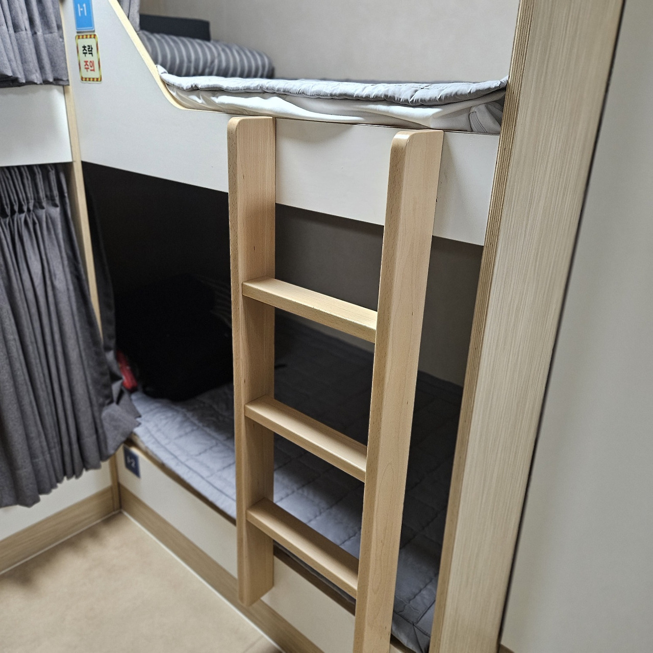 방에 들어가니 2층 침대들이 쭈욱 있었고 저는 1층 침대에 배정이 되었습니다.