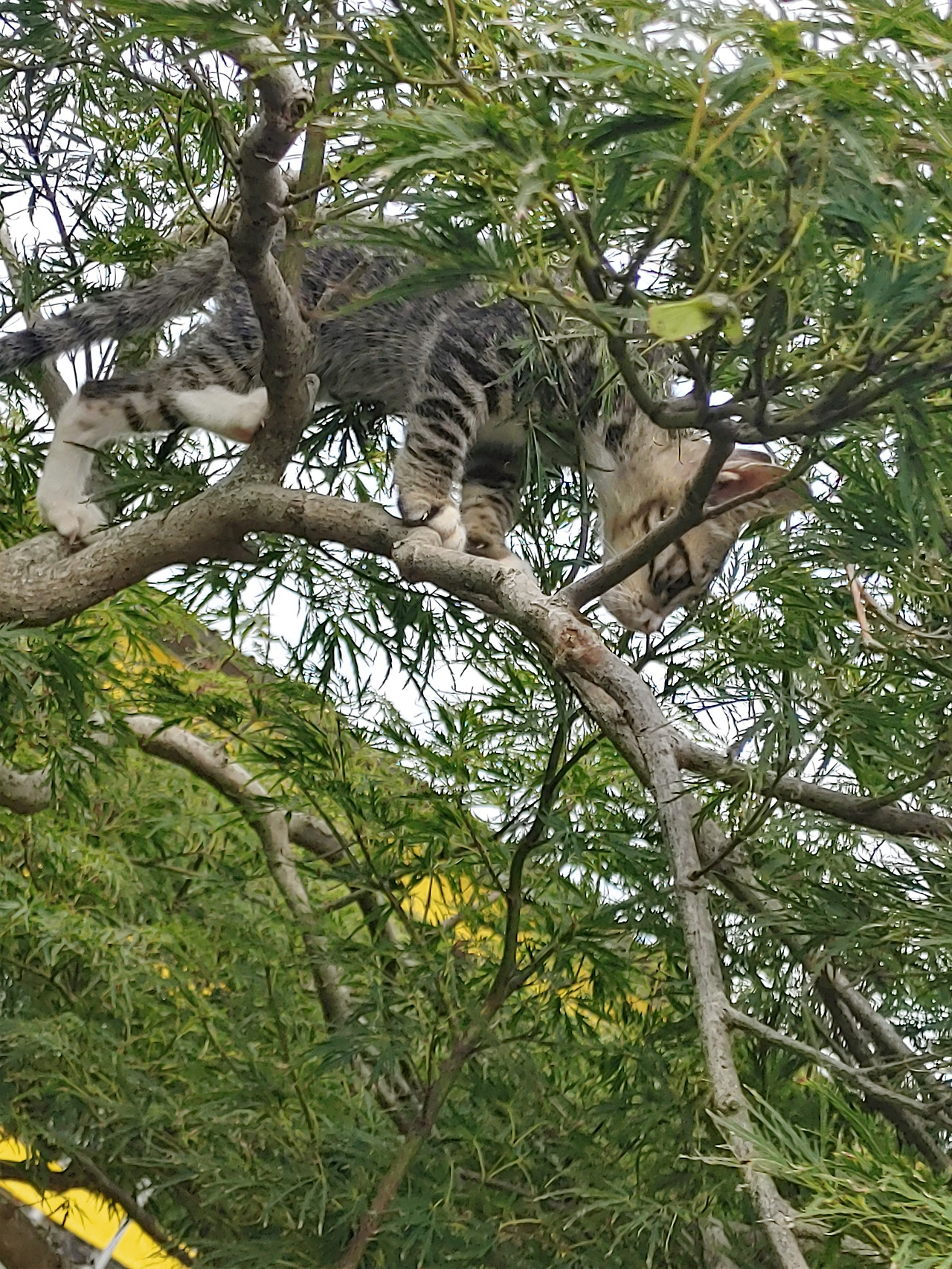마당의 정원수를 캣타워 삼아 등반하는 나비