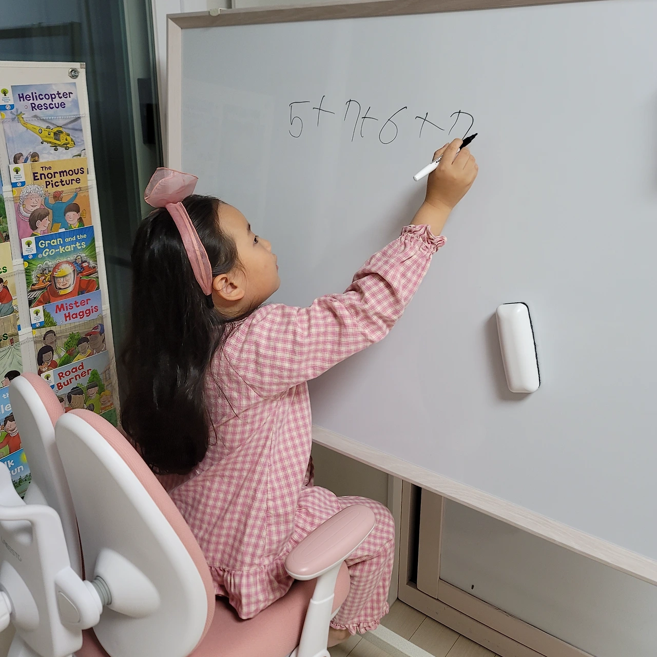 요즘 우리 집에서는 문제 내고 설명해 주는 놀이가 유행이다. 처음에는 두 수의 덧셈에서 시작했는데, 세 수의 덧셈, 네 수의 덧셈으로 확장 중이다. 아이가 스스로 문제를 내고 어떻게 푸는지 설명해 주는 놀이이다. 어른들이 보면 이건 누가 봐도 그냥 연산학습 같은데 아이는 이걸 놀이로 인식한다. 엄마 아빠가 와서 자기의 설명을 들어주길 기대하고 또 다른 풀이법을 알려주기 위해 고민한다. 아이 스스로 생각하고 확장하는 '놀이'인 것이다. 이러한 과정들이 반복되면 개념이 잡히고, 속도는 따라온다. 덧셈, 뺄셈이 탄탄하면 곱셈, 나눗셈이 어렵지 않다. 곱셈, 나눗셈이 탄탄해야 분수, 소수 연산이 가능하다. 어린 유아에게 곱셈, 나눗셈을 가르치기보다는 다양한 사고를 할 수 있도록 도와주었으면 한다.
