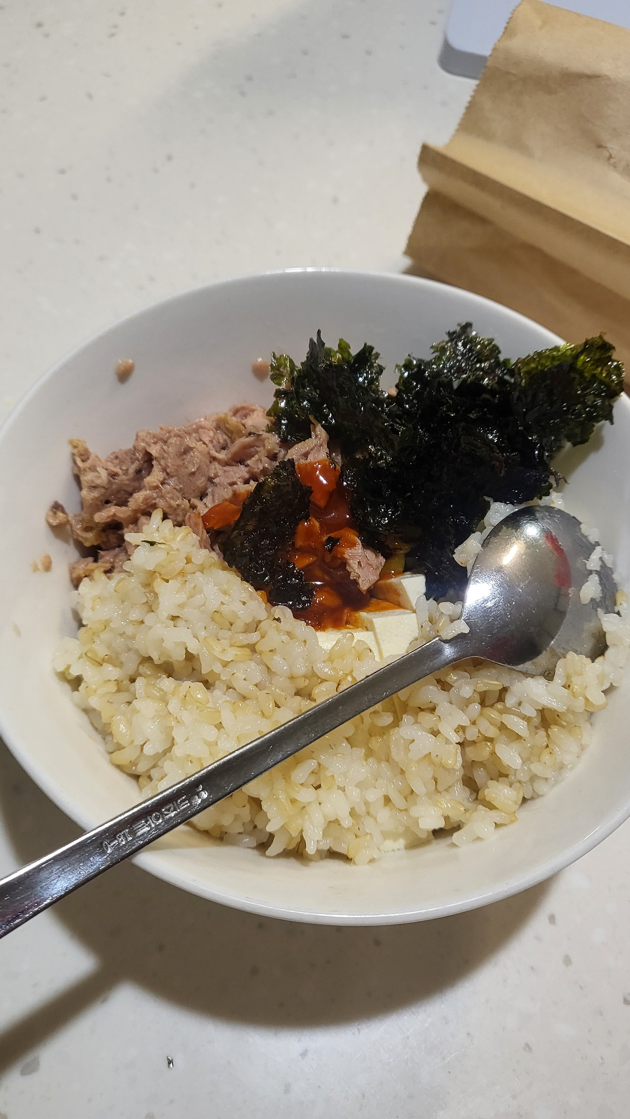 가. 밥에 현미를 섞었다.