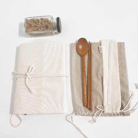 캠핑 갈 때 고체 치약을 챙겨가면 부피도 적게 차지하고 씹어서 바로 양치할 수 있으니 간편하다. 캠핑 가서 먹을 간단한 과일을 텀블러에 담아 가면 과일을 다 먹고 나서 물컵으로도 쓸 수 있다. 일회용품 자제를 위한 나무 수저세트와 텀블러, 유리 빨대도 챙긴다. 불멍하며 마실 말린 차도 유리병에 담아 가져 가면 티백 쓰레기를 줄일 수 있다.
