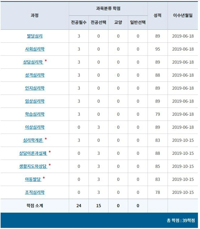 나는 1년에 걸쳐 두 학기 동안 온라인으로 수업을 듣고, 두 번의 독학사 시험을 통해 학위를 취득할 수 있었다. 첫 학기에는 발달 심리, 사회심리학, 상담심리학, 성격심리학, 인지심리학, 임상심리학, 학습 심리학, 이상심리학 8개 과목을 이수했다. 각각의 수업 진도에 맞추어 수업을 듣고, 과제를 제출해야 했다. 중간고사와 기말고사도 온라인을 통해 보았다.