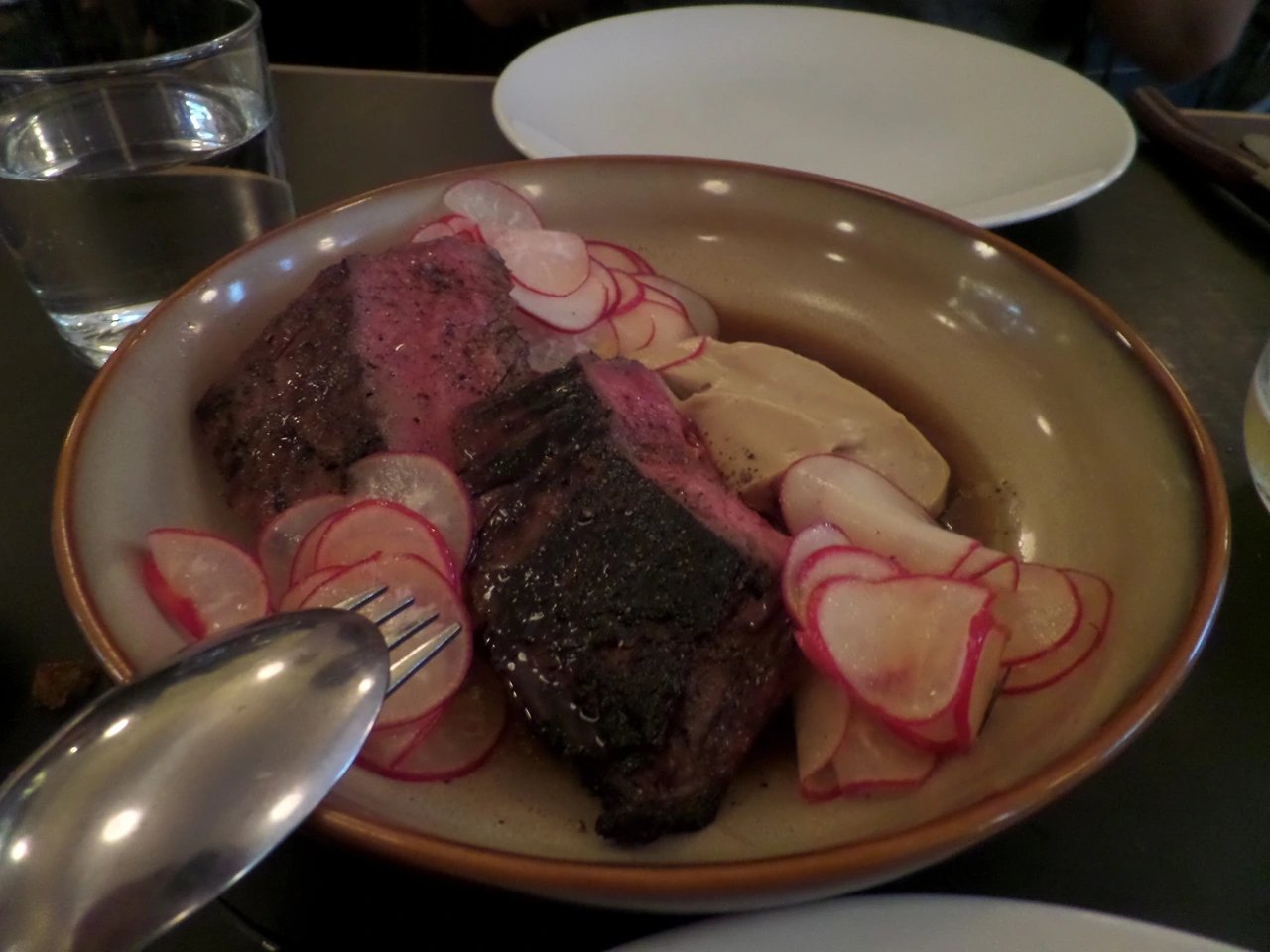 메인 요리는 다양하게 맛보고 싶어 도미 요리(snapper fillet )와 스테이크(flank steak)를 시켜 친구와 나눠먹었는데 괜찮은 선택이었다.