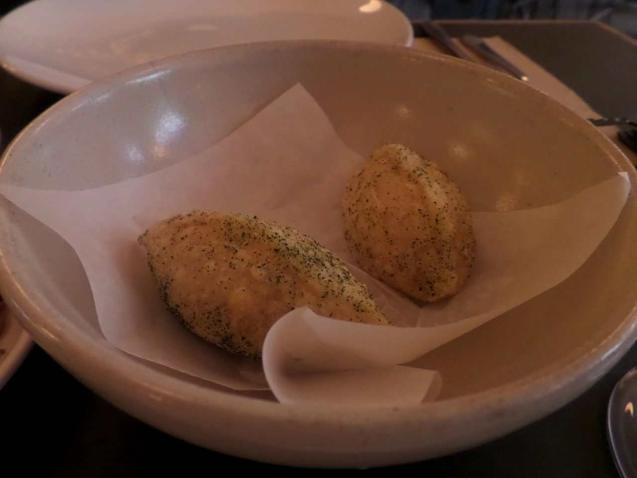 먹은 음식들을 좀 펼쳐보자면 애피타이저로 만두(crispy veg dumplings), 새우(king prawns) 요리를 시켰다. 물론, 입맛을 돋워줄 샴페인 한잔을 먼저 주문했다. 이날은 친구 생일이었는데, 친구의 생일을 축하해주고 싶다는 말을 덧붙이며!