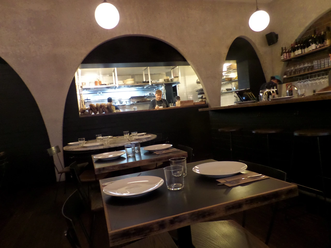 사진 속 분위기의 식당으로 바와 주방이 보이고 이 앞에 테이블 열개 정도 있던가. 아늑한 분위기의 식당이다.