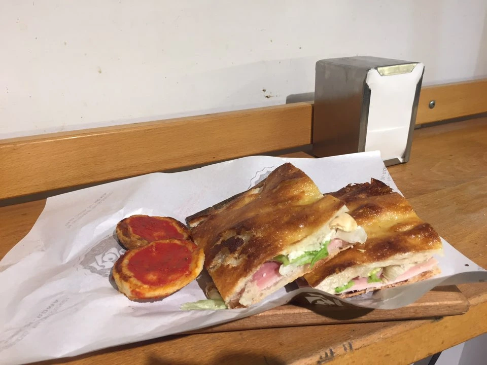 2. Marco Fono Roscioli에서 Pizza Bianca와 Pizzette Rusttiche 한 조각씩.
