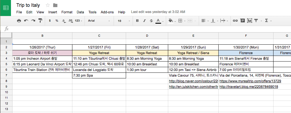 나의 막막함을 알기라도 한 듯, Barbara는 친절하게 이 동네에서의 일정을 짜주었다. 그에 맞춰 나도 이 동네 이후에 ‘홀로 시골 탐방’이라고 모호하게 적어두었던 일정들을 정리하기 시작했다. 요가 리트릿 후에 어떤 동네를 가면 좋을지 고민하다가 Barbara가 추천하기도 하고, 나도 가보고 싶었던 Siena와 Firenze를 다음 행선지로 결정하였다. 그에 맞춰 재빠르게 기차와 에어비앤비를 예약했다.