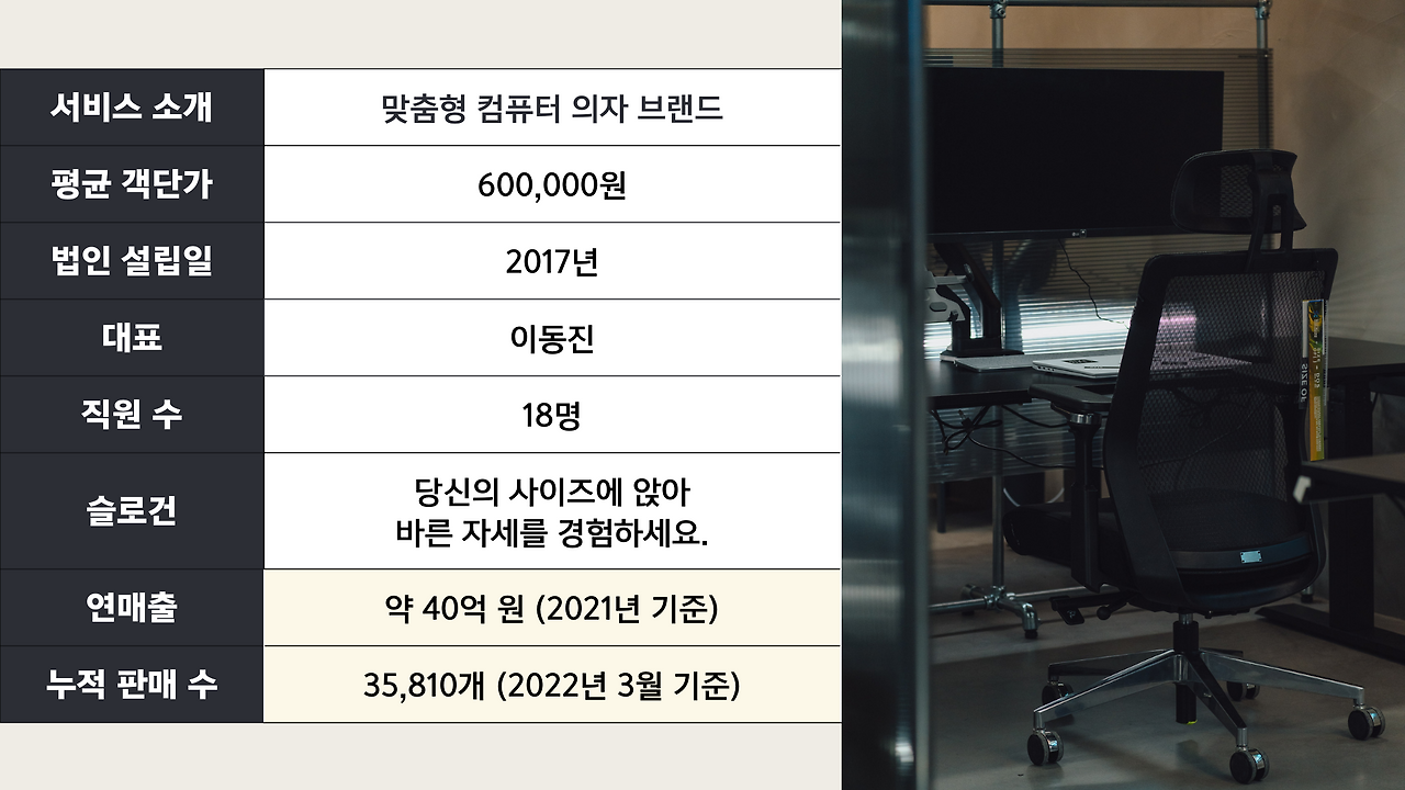 좌식 생활이 점점 더 중요해지는 지금. 모든 사람들의 신체 사이즈에 맞춘 다양한 파츠(부속품)를 개발하여 무려 2만 가지 옵션의 의자를 판매하는 맞춤형 사무 의자 스몰 브랜드, '사이즈오브'를 만나보았습니다. 사이즈오브는 창업 5년 차인 2022년 연 매출 100억 원을 바라보고 있다고 하는데요. 투자받은 이력이 전혀 없는데다가 언뜻 스케일업이 불가능할 것 같은 '맞춤형' 제품을 취급하는 사이즈오브가 이렇게 멋지고 단단한 행보를 만들어가는 비결은 무엇일까요?