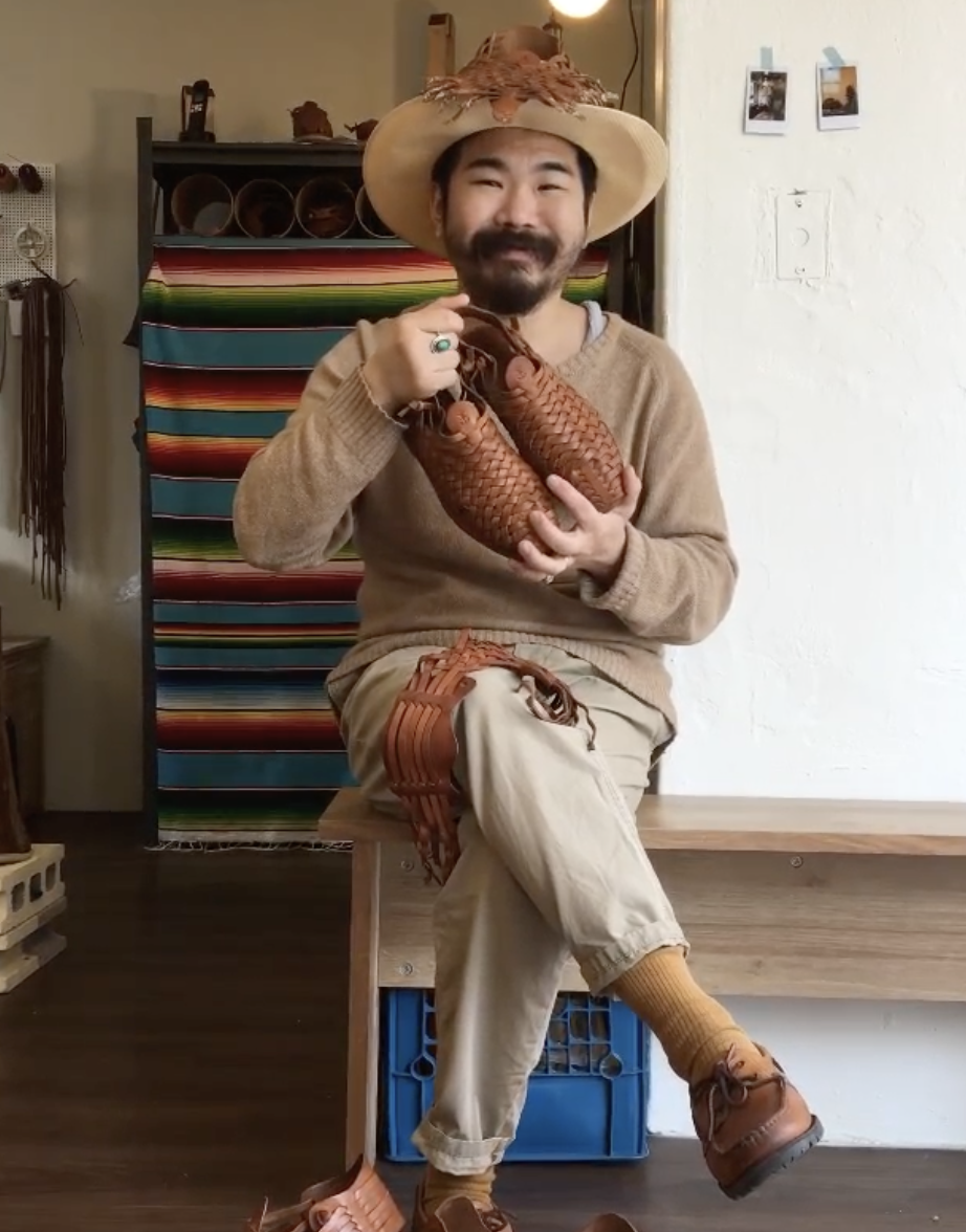 멕시코의 ‘꼬임 샌들’인 와라체(Huarache)라는 가죽 신발을 주로 판매하고 있어요. 와라체는 과거 멕시코 서민들이 신었던 전통 신발이고요. 요즘 멕시코 사람들이 일상적으로 신는 신발은 아니기 때문에 주로 관광지에 걸어놓고 판매할법한 제품이죠. 신발 이외에는 가죽으로 만든 가방과 명함 지갑도 판매하고 있습니다.
