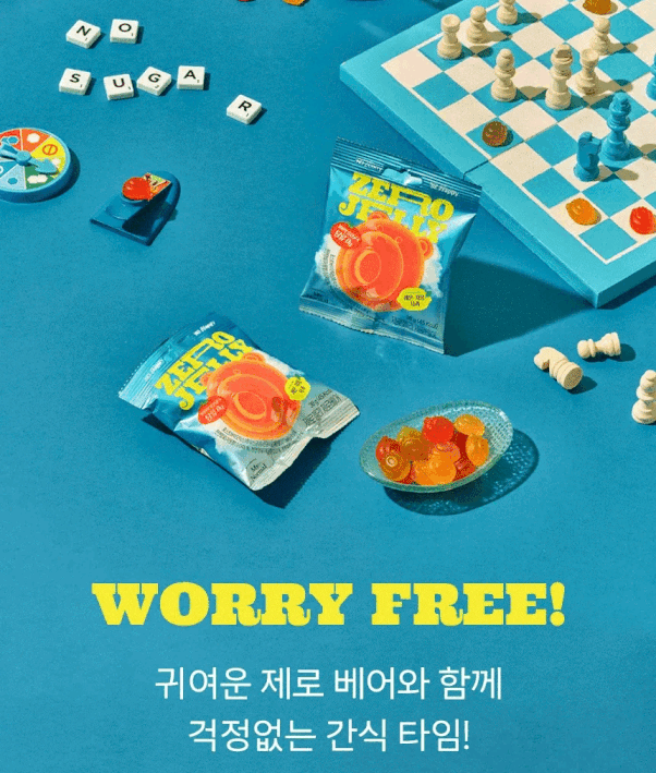 반대로 저당 젤리는 군것질을 하고 싶을 때 충동적으로 구매할 확률이 높아요. 연령대도 2030으로 조금 낮아지는 경향이 있고요. 올리브영에서 구경하다가 궁금해서 구매해보는 분들도 있겠죠. 그러니, 눈에 띄는 키치한 패키지 디자인이 맞다고 생각해요.