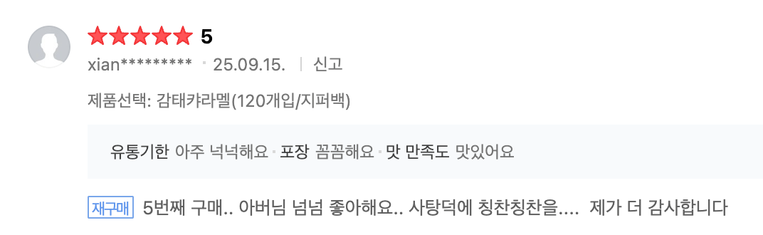 바다숲은 ‘감태의 일상화’를 목표로 다양한 제품을 선보이고 있는데요. 그중에서도 조청의 은은한 단맛과 감태 특유의 깊은 풍미가 어우러진 ‘감태 캐러멜’은 시니어 고객들에게 특히 인기입니다. 달라붙지 않는 부드러운 식감 덕분에 어르신들도 부담 없이 즐길 수 있는 간식으로 자리 잡았죠.