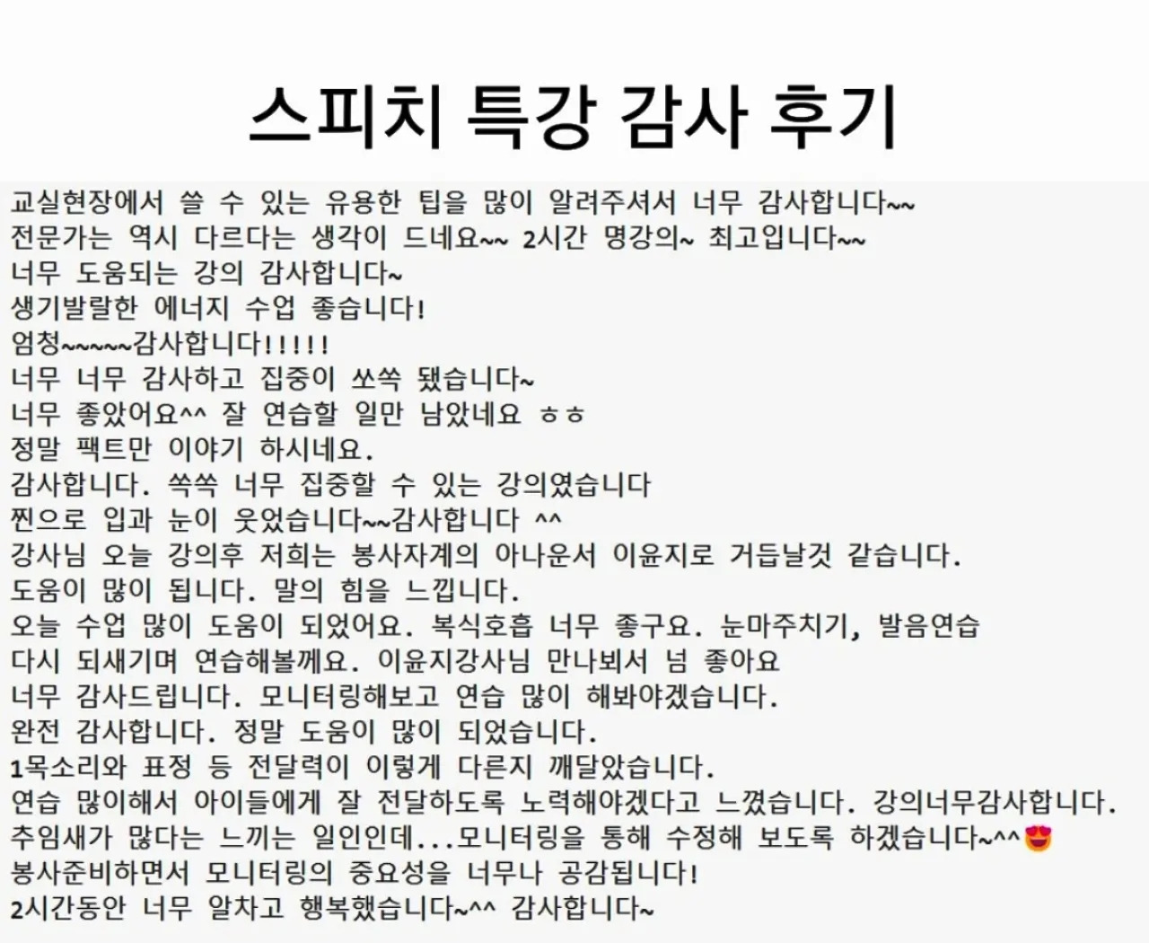 스피치 특강 후기를 남겨주셨습니다. 깊이 감사드립니다.