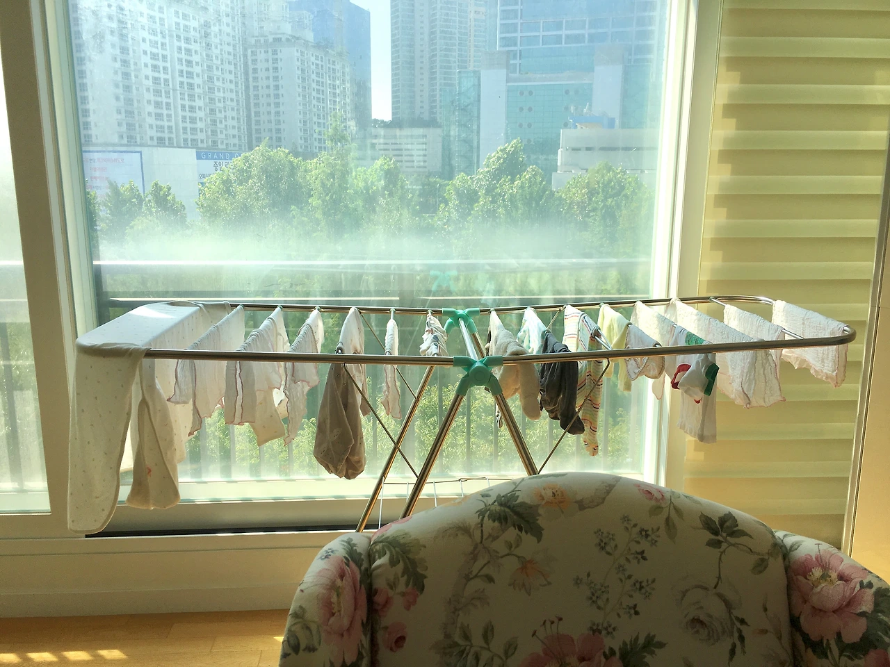 베란다 창문을 활짝 열면서 엄마는