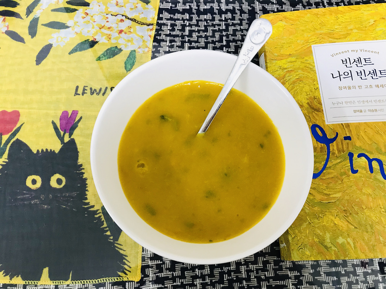 하얀 그릇에 노란 죽을 가득 담았다. 식탁 한쪽엔 지난주에 읽던 책이 놓여 있었다. 열정적이었지만 끝내 외롭고 쓸쓸했던 화가 고흐의 그림과 생애가 담긴 책, 표지가 온통 노란색으로 가득한 아름답고 슬펐던 책 <빈센트 나의 빈센트>.