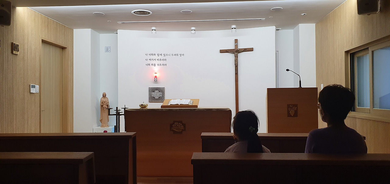 아내와 나는 나란히 성당 감실 앞에 앉았다.