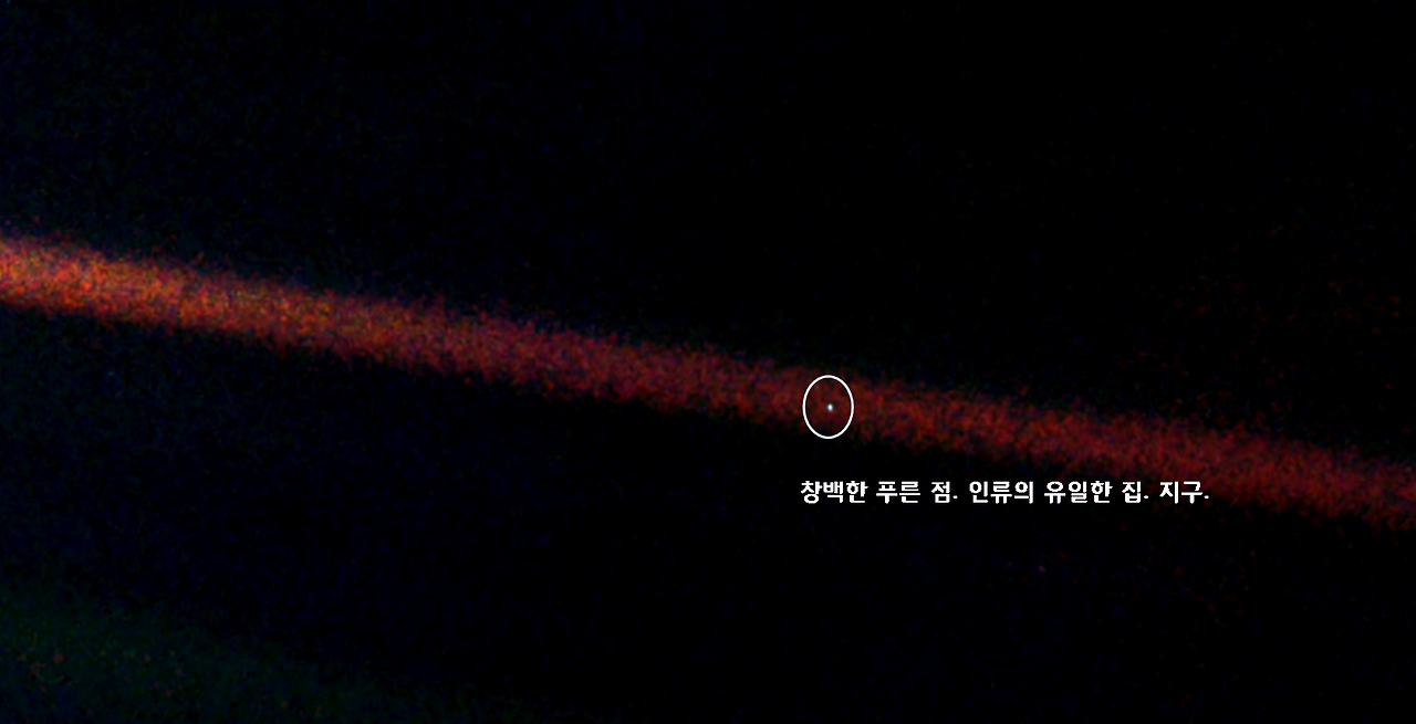 보이저 1호가 토성을 지날 때 칼 세이건은 큰 비용이 들더라도 카메라를 돌려 지구를 찍자고 제안했다. 그것이 무슨 의미가 있느냐는 다른 전문가들의 반대가 있었지만 칼 세이건은 사람들을 설득했다. 지구를 찍으려다가 자칫 태양을 찍게 되면 비싼 우주선의 카메라가 망가질지 모른다는 우려 때문에 그의 의견은 오랫동안 외면당했다. 그러나 결국 그의 노력 덕분에 우리는 해왕성 근처에서 바라본 지구의 사진을 얻을 수 있었다. 칼 세이건은 상상할 수 있었다. 광활한 우주에 떠 있는 우리의 어머니 지구가 얼마나 작고 애처로운지. 그리고 또 한편으로는 얼마나 소중하고 고마운지. 우주에서 바라본 지구는 작고 푸른 점이다!
