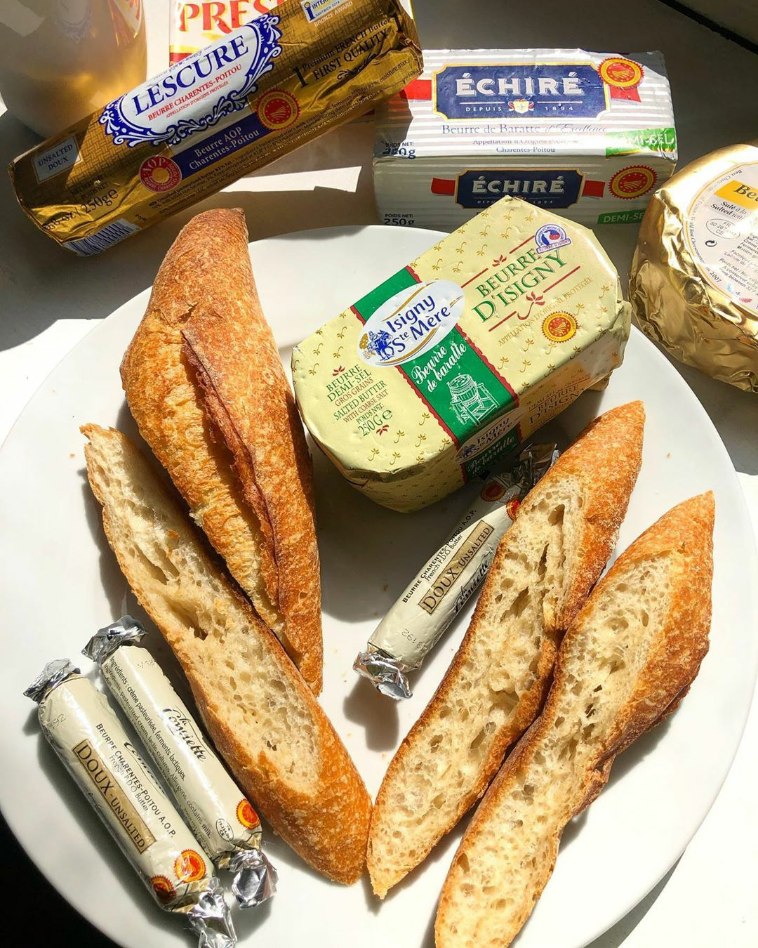 버터 덩어리가 아니라 한 번에 먹을 수 있는 양으로 나눈 (포션(portion) 버터라고 불리는) 낱개 포장 버터도 있다. 앵커(Anchor), 프레지덩(President), 루어팍(Lurpak), 메글레(Meggle) 등 여러 회사에서 나오니 취향대로 선택해 먹으면 된다. 그 중에서도 버터계의 명품(?)이라 불리는 라 콩비에트(La Conviette)는 긴 캔디 모양으로 생겨서 비싼 몸값을 자랑한다. 프랑스 유명 버터 산지 중 하나인 샤랑트-푸아투(Charentes-Poitou) 지역 특별 인증 제품(AOP)으로 유통기한은 짧은 편이지만 부드럽고 고소하며 포장까지 고급스러워 한때 많은 인기를 끌었다.