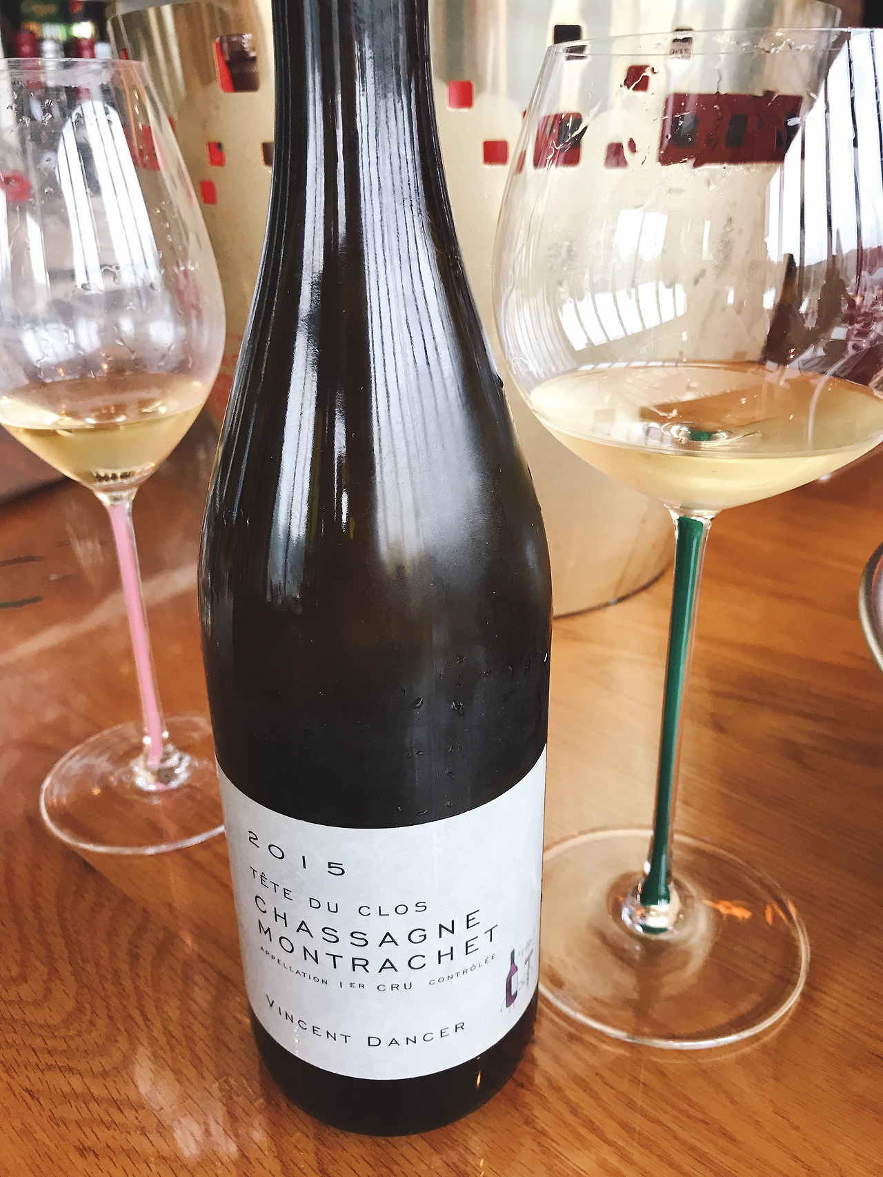 그가 생산하는 몇 가지 화이트 와인 중 시음할 기회가 있었던 화이트는 뱅상 댄서 샤샤뉴-몽라셰 프리미에 크뤼 떼뜨 뒤 끌로 (Vincent Dancer Chassagne-Montrachet 1er Cru Tete Du CLos 2015)다. 뱅상은 떼루아의 특색을 잘 살린 (그러니깐 땅과 기후적 특성을 잘 반영한) 와인을 만드는 것으로 알려져 있다. 나에게 뱅상 댄서는 꽤나 강렬한 느낌으로 다가왔다. 화이트 특유의 상큼함을 간직하면서도 꽃향이 나다가 고소한 향이 더해지는 와인이 갖추어야 할 것을 다 갖춘 느낌이랄까. 그래서 심심하기는커녕 몰입을 이끌어내는 매력덩어리다. 한 잔만 마셔도 그 진가를 알 수 있으니 이 보다 더 좋은 선택은 없겠다 싶다.