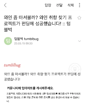 와인 취향 찾기 프로젝트가 펀딩에 성공해서 후원해 주신 분들께 전자책을 보내드렸습니다! 조금은 뿌듯하네요. 제 글이 와인을 좋아하는 분들, 좋아지고 있는 분들께 도움이 되면 너무 좋을 거 같습니다.