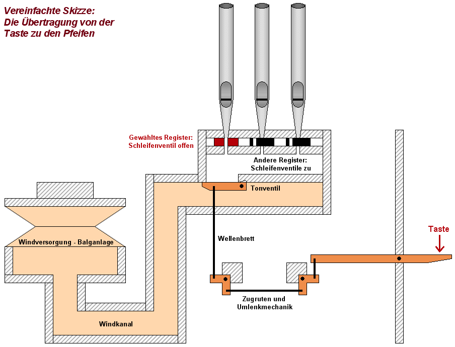 오르간의 기능을 살펴보면 이렇게 건반을 누르면 공기가 통과하여 파이프에 공기를 불어넣는 원리이고 하프시코드는 줄을 잡았다가 퉁기는 방식이라 아무리 건반을 세개 누른다고 한들 건반에 의해서 즉 직접적인 타건에 의해서 소리를 조절할 수 는 없었습니다. 이러한 악기의 원리를 바탕으로 바로크 음악들은 주로 소리가 강력하게 명확히 대조되는 다이나믹을 선호하였고 그것을 통해 음악적 표현을 좀더 극적으로 할 수 있었습니다.