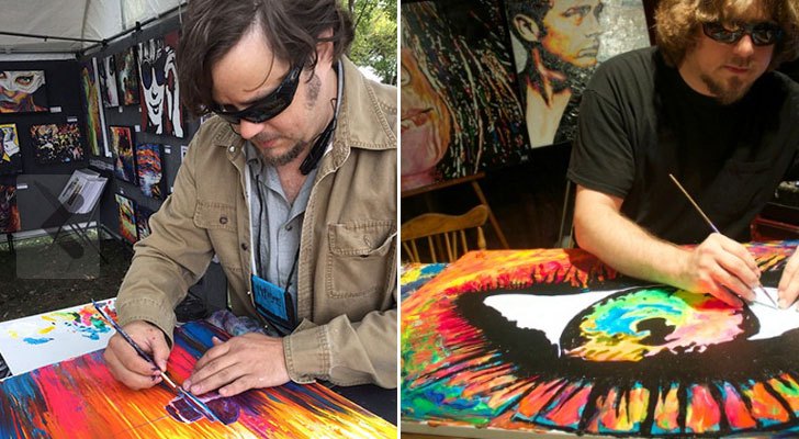 ▼ 이 그림을 그린 사람은 존 브램블릿이라는 사람으로 그는 간질로 인해 시력을 잃고 빛과 어둠만을 구별할 수 있는 맹인입니다. 하지만 2001년부터 그가 사용하는 물감을 담은 통에 점자 표시를 하고 그림을 그릴 때도 손으로 감각을 느껴가며 그림을 그릴 수 있었고 이러한 노력을 통해 많은 이들이 감탄할만한 아름다운 작품을 선보여 많은 사람들을 놀라게 하고 있습니다.