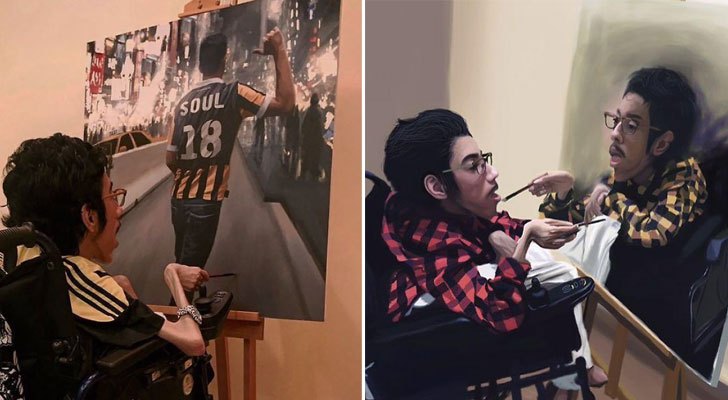 ▼ 이 그림을 그린 주인공의 타고난 재능을 부러워할만 하지만 그는 태어날때부터 장애를 가지고 있어 붓을 들기조차 어려워보일만한 몸으로 휠체어에 의지한 채 그림을 그렸습니다.