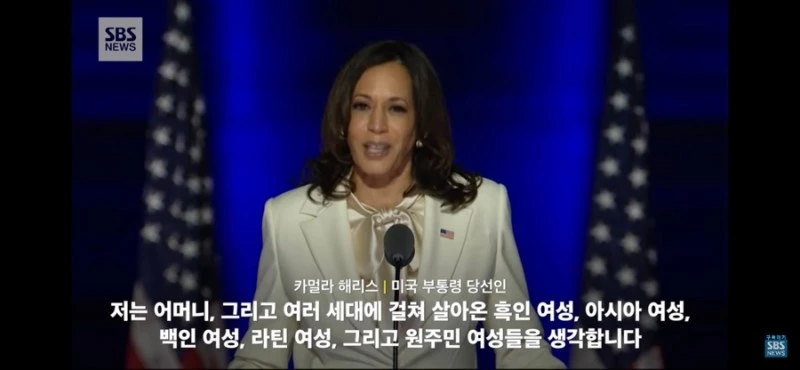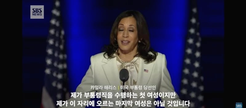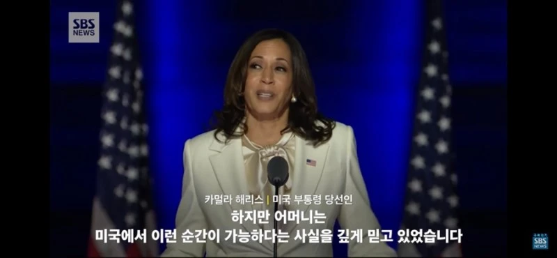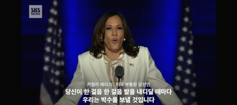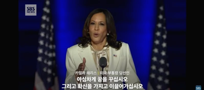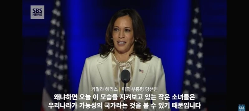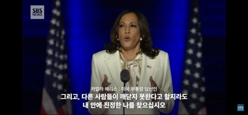 언제까지고 끝나지 않을 것만 같았던 미국 대선. 이번 미국 대선은 극명하게 다른 캐릭터의 두 후보를 두고 미국인들뿐만 아니라 한국 포함 미국과의 이해관계를 지닌(거의 모든 나라겠지만) 국가들에 중요한 문제로 다가왔을 것이다. 결국 그 끝은 났고, 이후에 부통령에 당선된 카멀라 해리스의 연설이 있었나 보다.