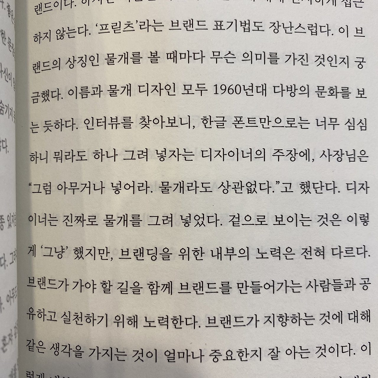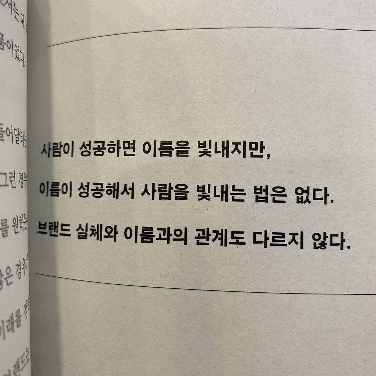 이 책을 읽으면서 '나'는 어떤 브랜드가 되고 싶은지, 될 수 있을지 또한 생각해 보았다. 이제는 직장이 아닌 직업이 중요해진 시대가 된 만큼 개인의 퍼스널 브랜드가 중요해졌다. SNS와 유튜브 등을 통해 고유한 컨셉과 주제로 자신의 역량을 자유롭게 드러낼 수 있게 되었으니까. 남들이 다 그렇게 생각한다고 해서, 남들이 그렇게 한다고 해서 좇아가는 일에서는 나를 금방 잃기 마련이다. 앞으로는 나의 퍼스널 브랜딩에 대한 고민과 탐구 없이는 건강한 삶의 지속 가능성을 바랄 수 없을 것이라는 생각을 했다.