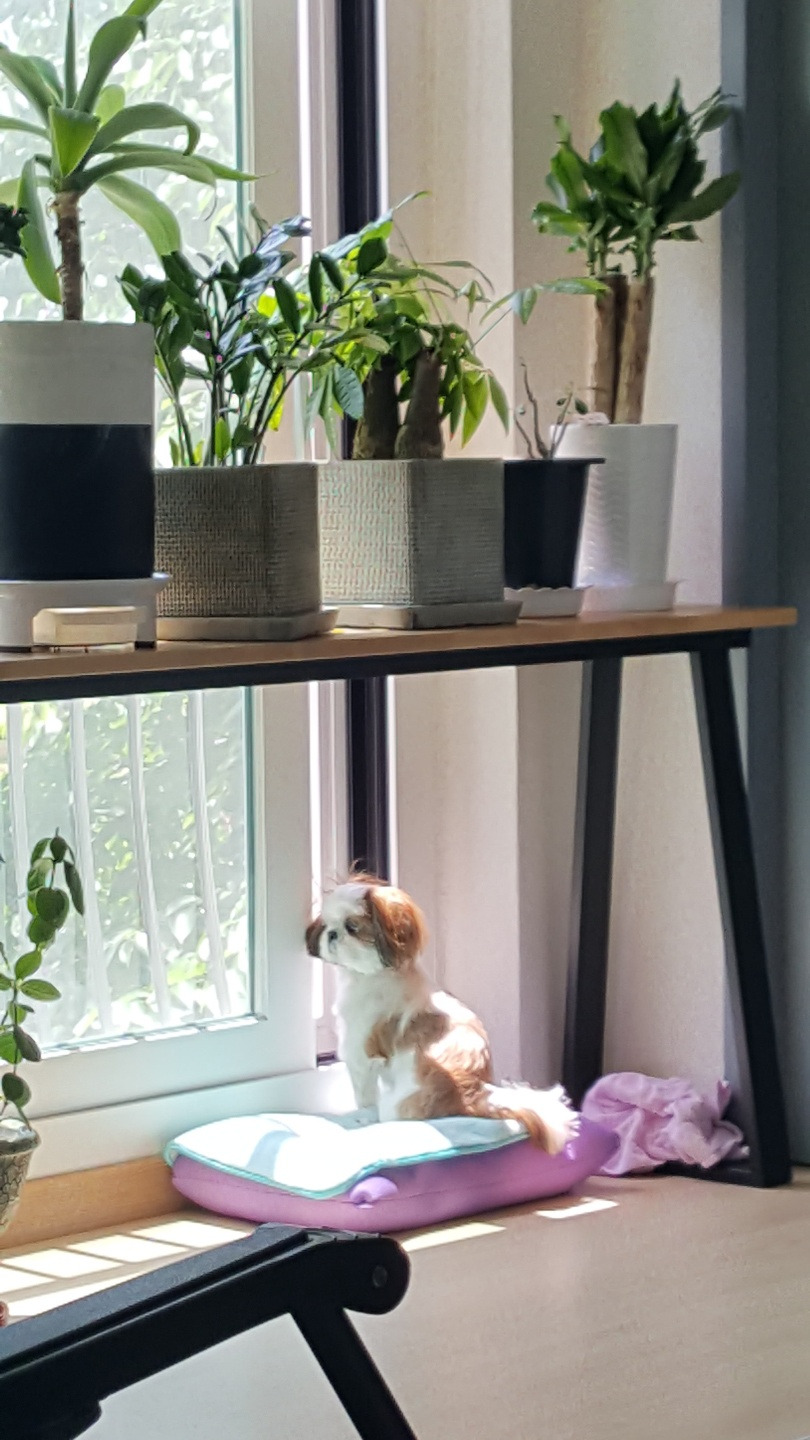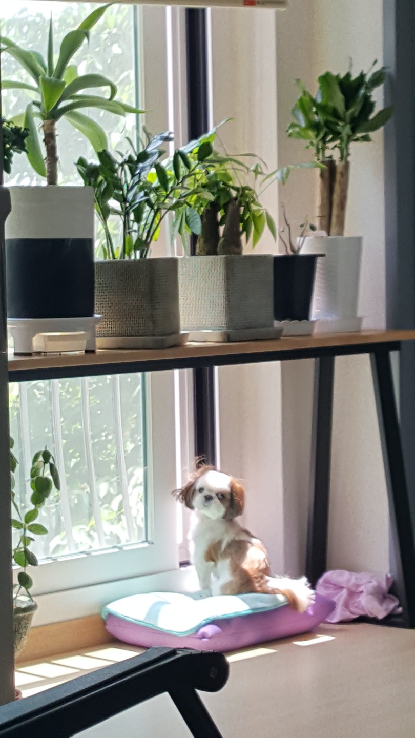 그러다 산책의 '산'자만 꺼내도 이런 눈으로 쳐다보는 그 아이.. 불가피하게 산책을 못 나갈 경우에는 꺼내지도 못하게 된 금지어 '산책'..