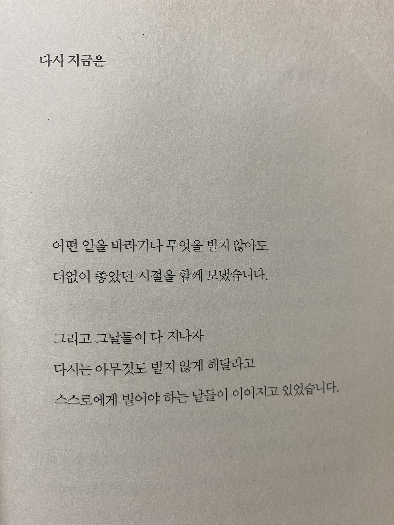 소설이든 에세이든 몇 장을 넘기다 보면 내가 좋아하는 그래서 오랫동안 두고, 보고 싶은 문체들이 간혹 있는데 그런 책을 또 만나게 된 것 같아서 기뻤다. 결코 뻔하지 않으며 끝날 때까지 끝나지 않는 산문집이다. 지나온 날들에 대한 생각에 잠기고 싶거나, 아무것도 생각하고 싶지 않을 때 반복해서 읽기를 추천한다. (새벽에 읽으면 감성 폭발해서 잠 못 자는 것은 안 비밀)