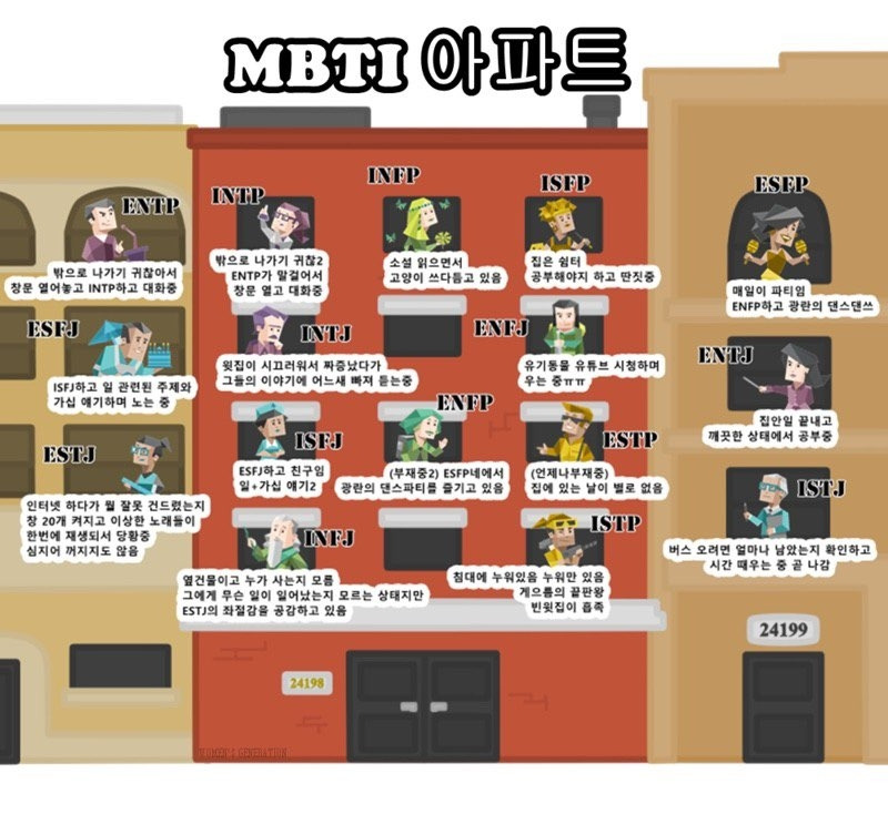 얼마 전, 유튜브의 알 수 없는 알고리즘에 의해 ‘너는 MBTI가 뭐야?’라는 제목의 시리즈 영상들을 보게 되었다. 가장 많은 조회 수와 댓글 수는 각각 9.4만 회와 900개를 기록했고, 평균적으로는 3만 회와 400개의 댓글 수를 기록하고 있다. ‘ESTJ'에서부터 'ENTP', 'INFP' 등 MBTI요소의 조합별로 다양한 유형의 주인공들이 등장하며 각각의 인물이 그들의 MBTI에 따라 같은 경험을 어떻게 다르게 받아들이는 잘 담은 영상들이었다.