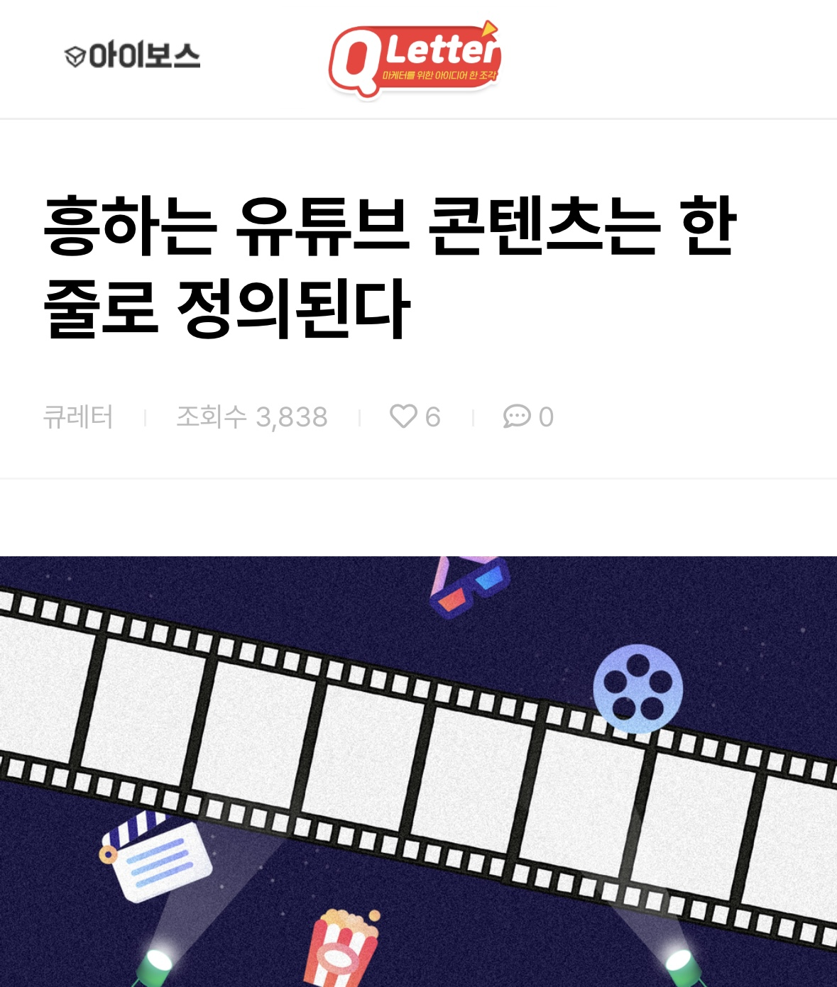 그 첫번째편 '흥하는 유튜브 콘텐츠는 한줄로 정의된다> 칼럼을 소개합니다.
