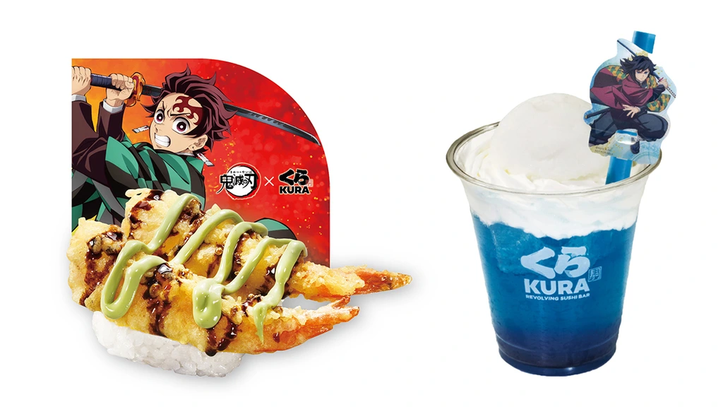 일본의 대표적인 회전 초밥 체인점 '쿠라 스시'와도 특별한 협업을 진행했습니다. 주인공인 카마도 탄지로의 이미지를 담은 '탄지로의 새우튀김 마요소스', 토미오키 기유는 '기유의 물의 호흡 레몬스쿼시' 메뉴로 재탄생했습니다.