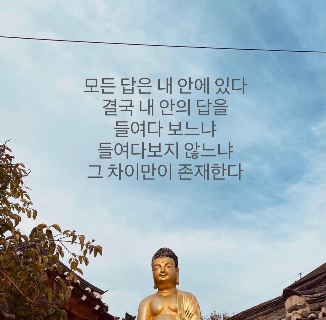 모든 답은 내 안에 있다결국 내 안의 답을 들여다 보느냐 들여다보지 않느냐 그 차이만이 존재한다