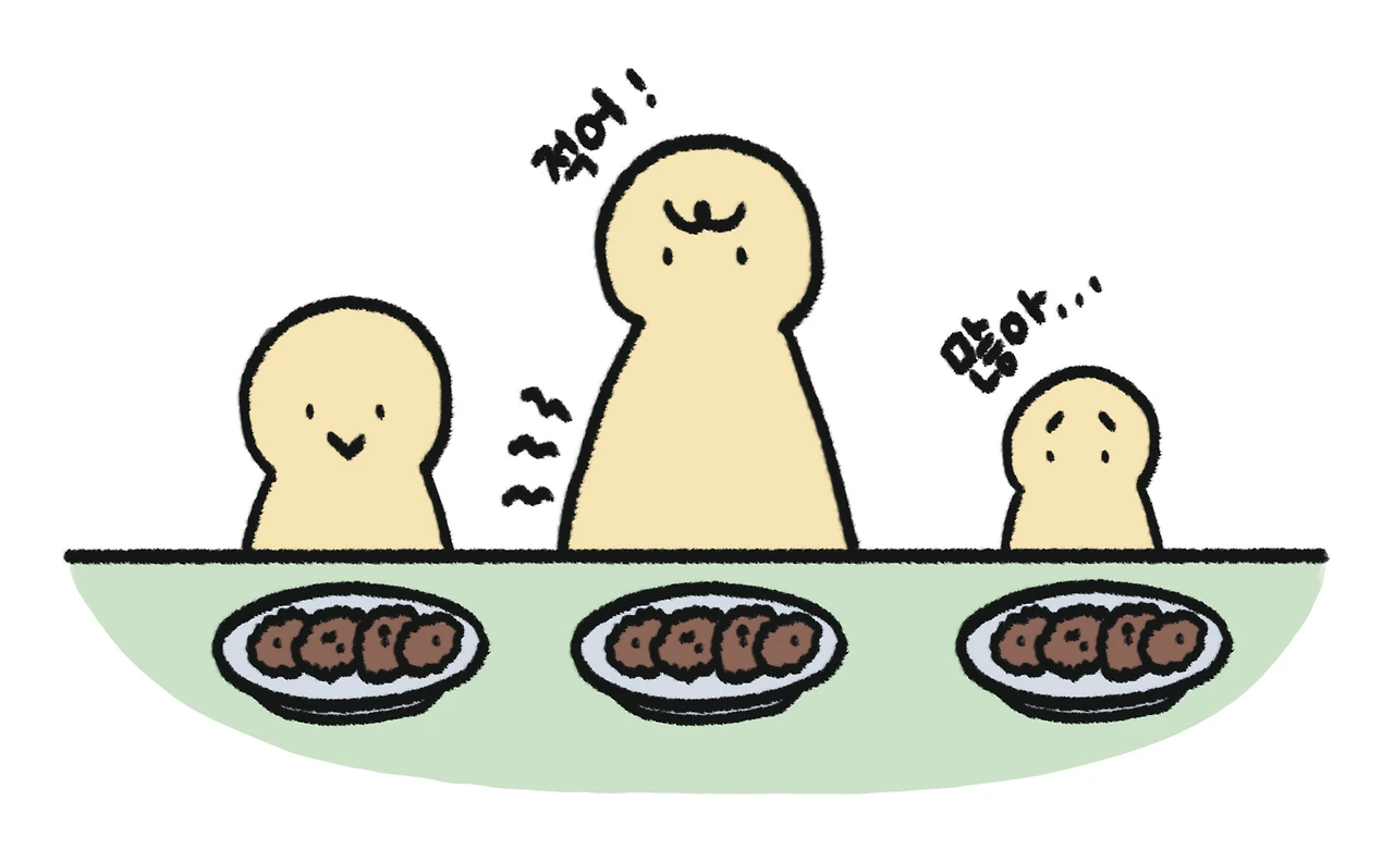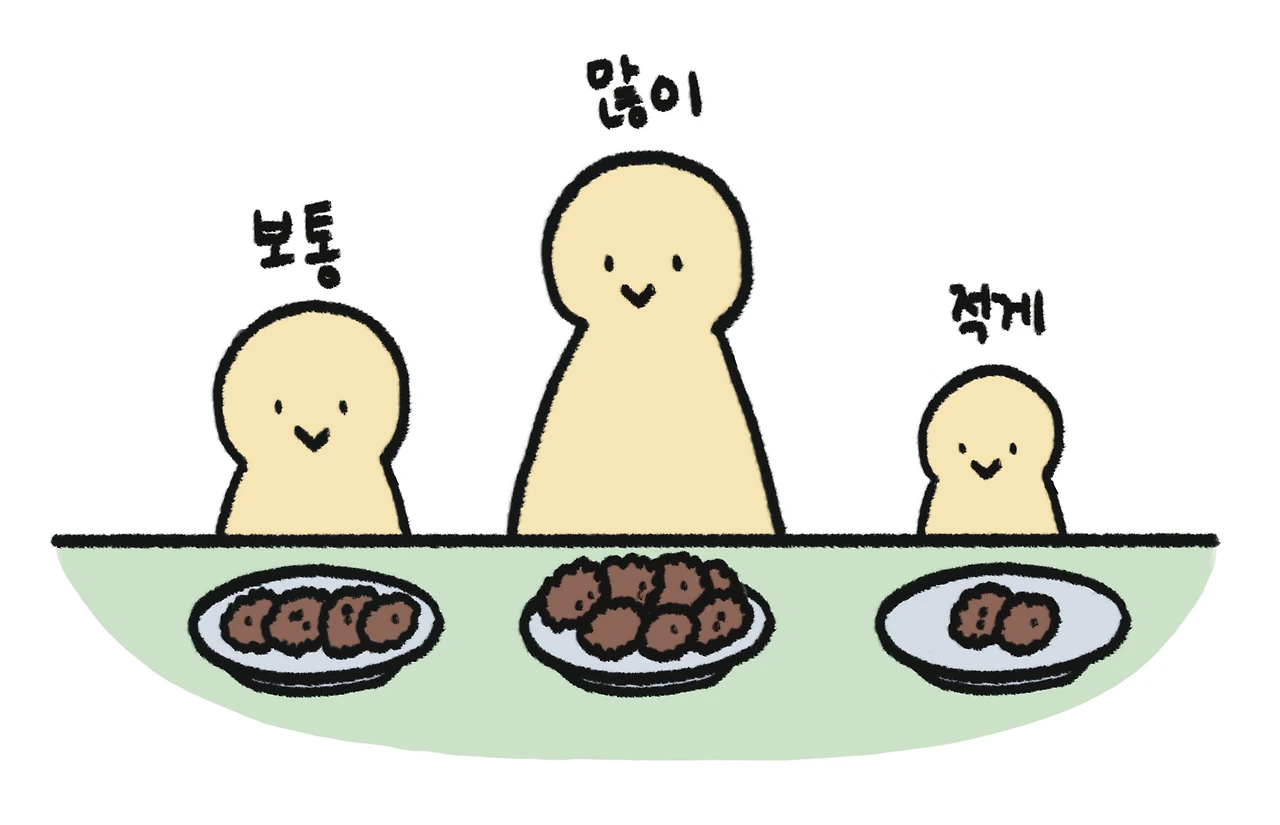 그렇게 되면 밥을 많이 먹고 싶은 친구는 여러 번 급식을 받느라 왔다 갔다 해야 해서 불편할 테고, 밥을 조금만 먹고 싶은 친구는 불필요하게 많은 음식을 받게 되니 먹고 남은 일부를 버려야 하는 상황이 생기겠죠.
