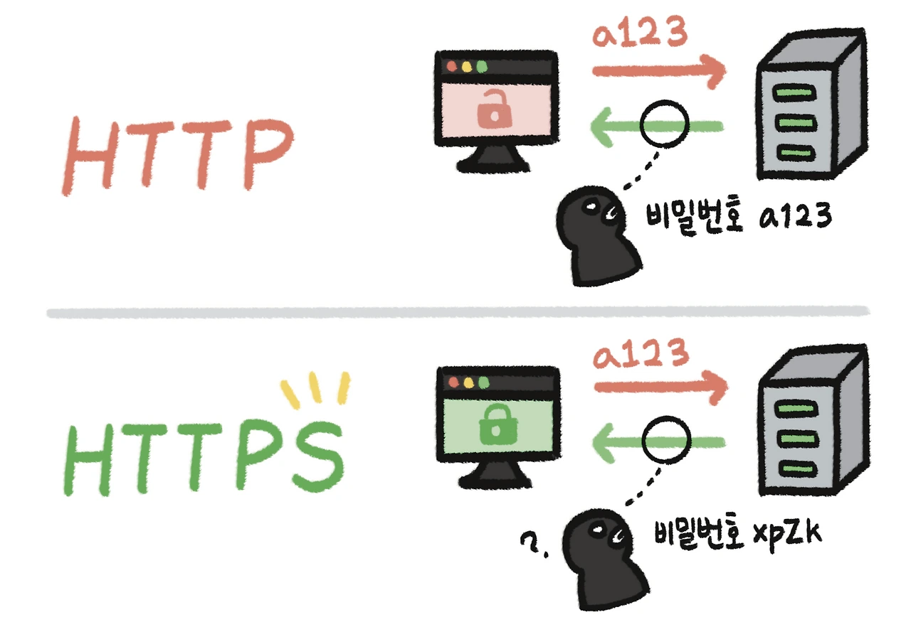HTTPS(Hypertext Transfer Protocol Secure)는 HTTP의 뒤에 S 한 글자가 추가되었는데요. 이름에서 알 수 있듯 HTTP에서 보안(secure)이 강화된 프로토콜입니다.