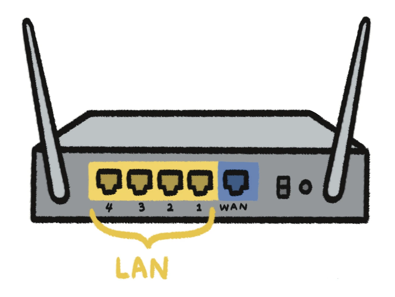 우리 일상에서도 이러한 라우터와 허브의 역할을 하는 장비를 찾아볼 수 있는데요. 바로 가정용 인터넷 공유기입니다. 공유기는 일반적으로 1개의 WAN과 4개의 LAN 접합부로 구성되어 있는데, 여기서 LAN이라고 쓰인 곳으로 기기를 연결하면 서로 하나의 네트워크 안에서 데이터를 주고받을 수 있게 됩니다.