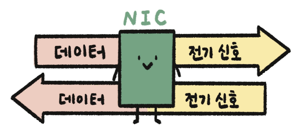 그래서 네트워크 인터페이스 카드를 사람으로 비유하자면 전기 신호와 데이터라는 각각 다른 언어로 소통하는 사람들 사이에서 각자의 언어로 대화 내용을 번역해주며 원활한 소통을 돕는 통역사로 볼 수 있습니다.