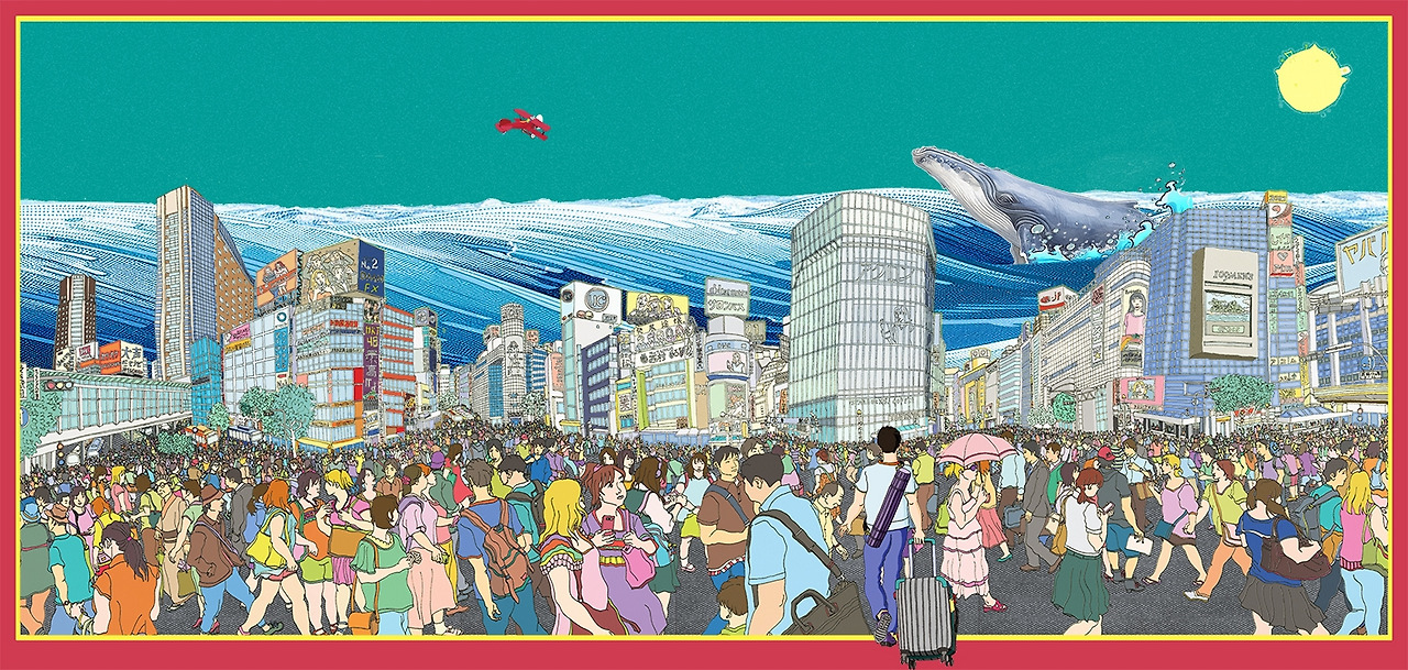 이 작품의 배경 구도의 특성은 도쿄를 대표하는 시부야 거리의 3차원 공간을 해부해 다시 작가의 임의로 배치해 마치 병풍처럼 펼쳐서 2차원 평면 위에 배치하여 변환하여 시부야 거리의 도심 거리를 한눈의 볼 수 있도록 제 구성해 놓은 작품이다.