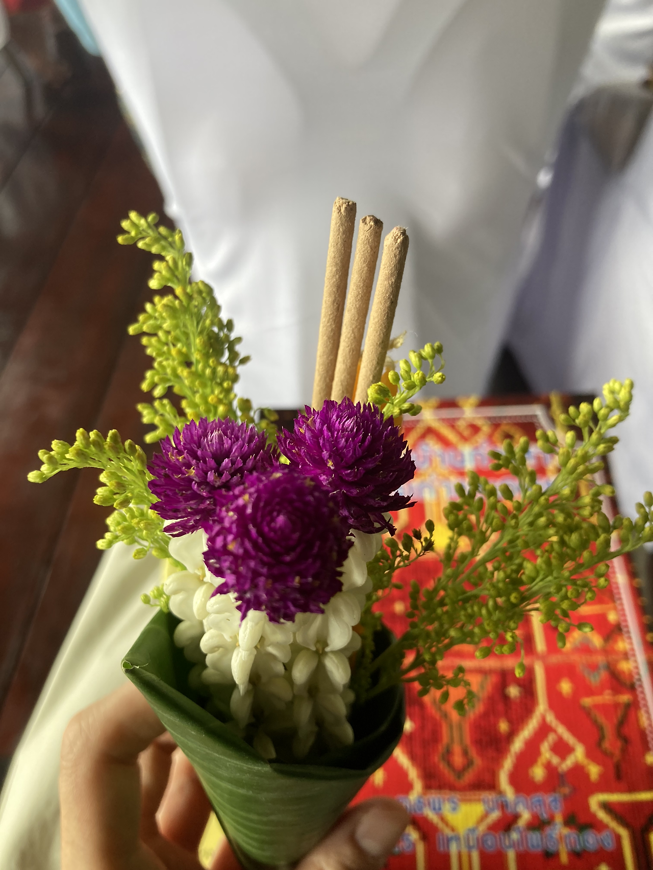 축사 후에는 타이-유안족 마을인 반 타 사오(Ban Tha Sao)의 종교 의례(ritual ceremony)가 시연되었다. 지역사회 대표자가 불경을 외고 난 뒤, 모든 참여자들이 코코넛 나뭇잎으로 싼 꽃과 향, 초 등을 반상처럼 생긴 쟁반 위에 놓아두며 복을 빌었다. 우리 학교 연구소 외 2 개 대학교와 왕립 인류학 센터가 함께 반 타 사오 마을에서 타이 유안족 구술언어를 태국어 알파벳을 빌려 문자체계를 정립했는데, 이 의례를 통해 언어와 문화, 전통 지식이 보존되기를 함께 비는 의미가 담겨있었다.