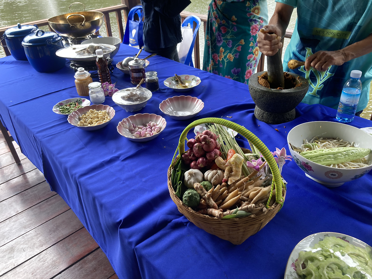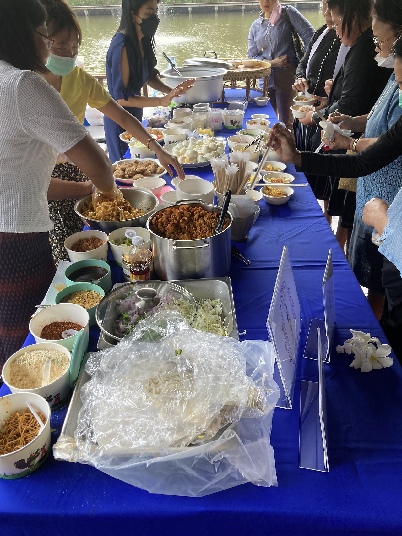 행사는 계속해서 진행되었지만 나는 슬슬 배가 고파져서 슬쩍 빠져나왔다. 이미 많은 사람들이 점심을 먹으려고 줄을 서 있었다. 태국 북부, 혹은 미얀마 음식(으로 추정되는)을 간단히 맛보았다. 아래 사진에 절구로 빻고 있는 것은 생선된장소스(?) 같은 것인데, 준비 중인 상태라 맛보지 못해서 아쉬웠다.