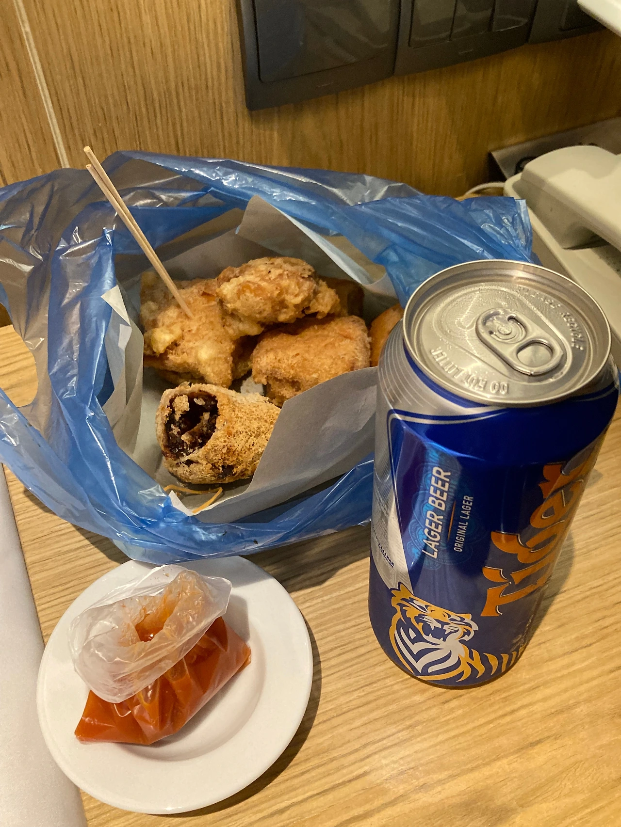 그리고 가게 옆에 튀김집이 있었는데 현지 사람들이 줄을 엄청 서서 기다리길래 나도 사봤다. 종류가 굉장히 다양했는데 내 차례가 왔을 때는 다 팔린 뒤라서 옵션이 얼마 없었다. 그래도 뭐.. 일단 사 와서 맥주랑 먹었는데 맛있었다! (튀김집 위치: https://maps.app.goo.gl/3LGH4aWovnwjuC6r9)