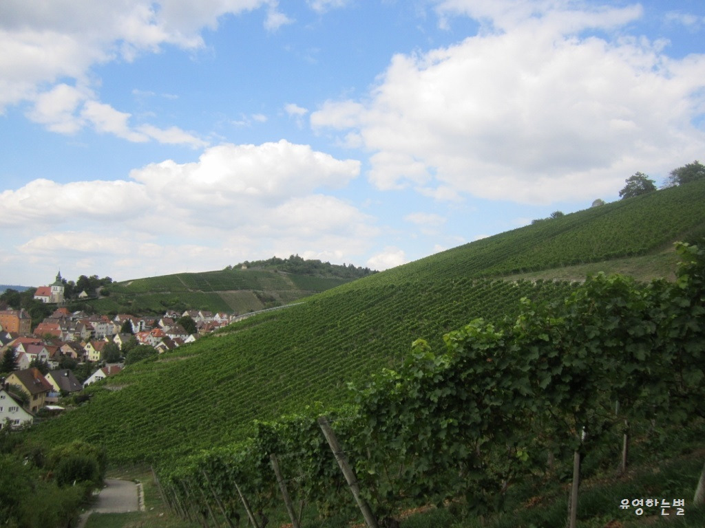 포도알은 그리 커 보이지 않았지만, 확실히 날씨는 정말 좋았다. 운 좋게도 예나서부터 날씨가 좋았는데, 마지막 슈투트가르트에서는 화룡점정을 찍는다. 높지 않은 산 전체가 모두 포도농장인 곳. 농장 군데군데 작은 집들이 있는데 농장 가운데 아예 사는 사람도 있는 것 같다. 하지만 산을 거의 다 올라도 여전히 도시는 가깝게 있어 포도가 그리 깨끗할 것 같지는 않다. 그래도 도시 안에 산과 포도농장이 있다니, 여기 사는 사람들은 참 행운이다.
