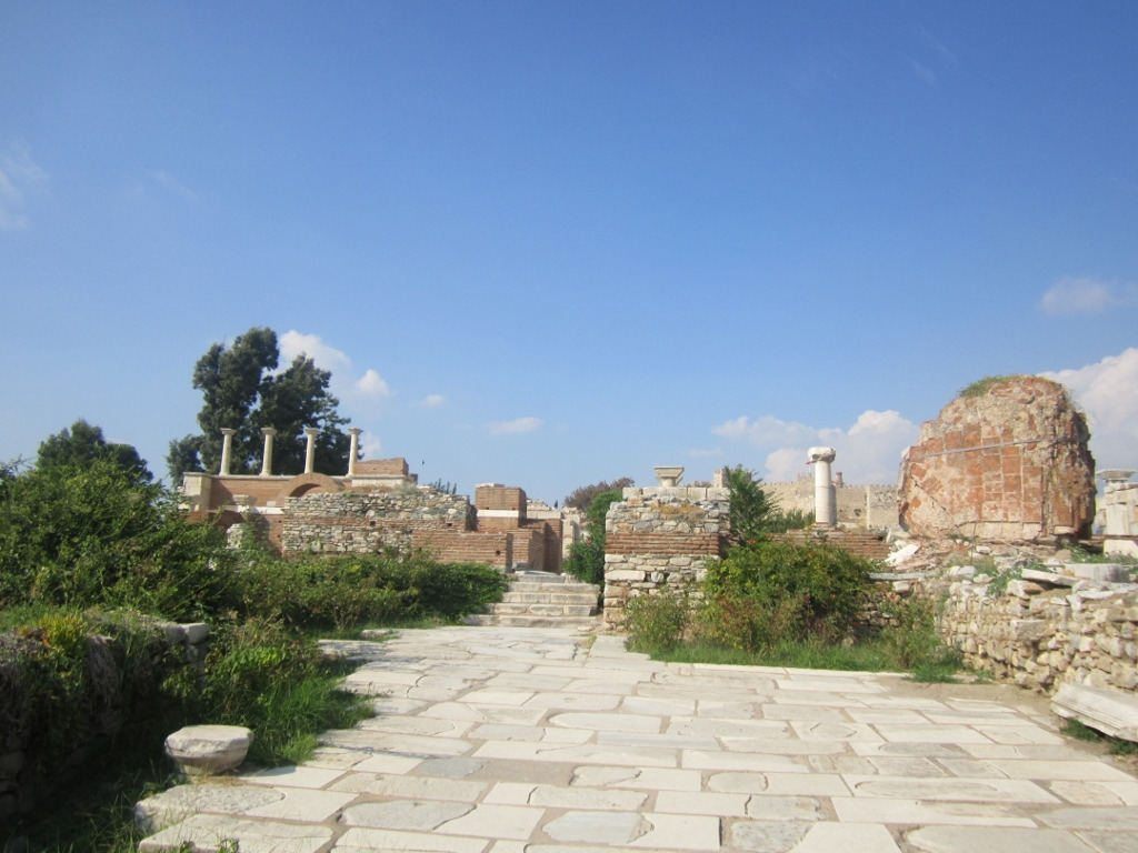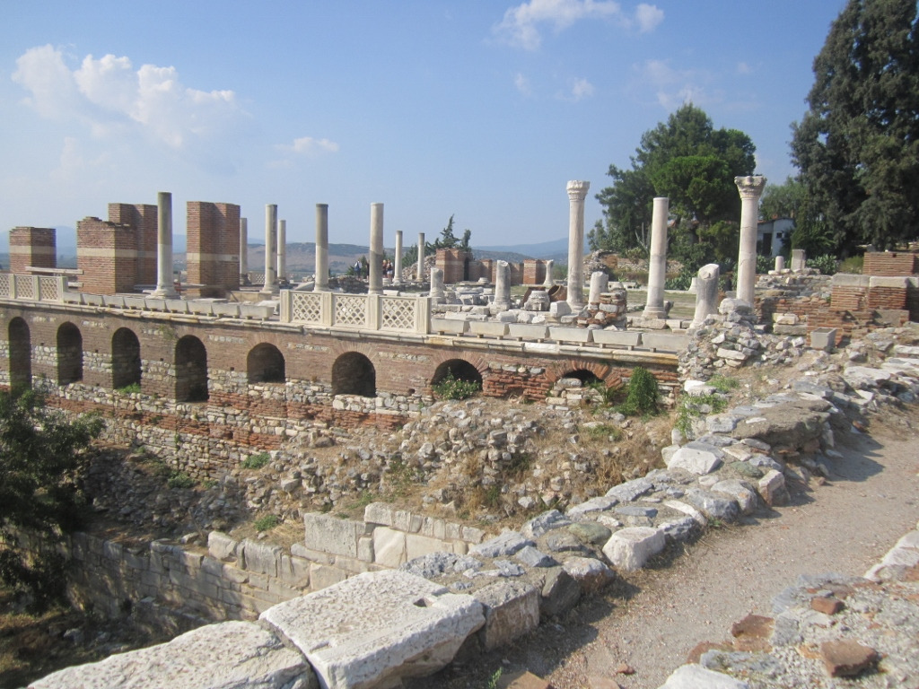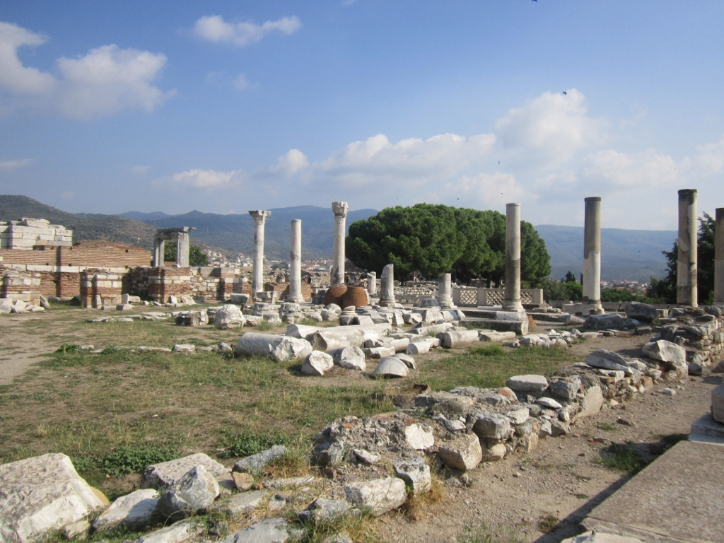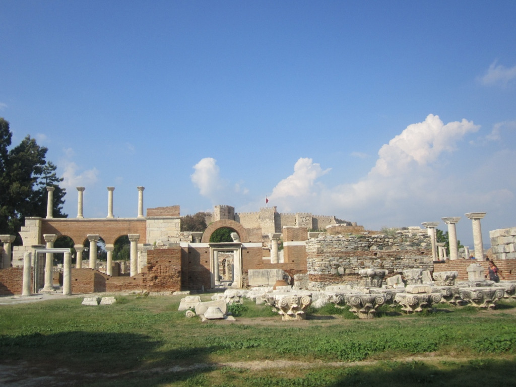 이곳이 교회라고 계속 나 자신에게 말하며 뜨거운 햇살 아래 교회터를 걸었다. 거의 무너진 터라 무얼 어떻게 봐야 할지 조금은 난감했지만, 어디에 있어도 도시를 내려다볼 수 있는 위치는 참 마음에 들었다. 사도 요한의 무덤터가 있던 자리에 만들어진 교회라고 하는데, 살아생전 그렇게 핍박받고 고생했지만 죽어서 참 좋은 곳에 묻혔구나 싶었다. 그가 묻힌 곳이기에 더더욱 기독교도들에겐 남다른 의미일 이 곳. 에베소가 로마제국의 큰 도시 중의 하나였듯이 이 교회도 한때 번창했을 게 분명하지만, 흥하면 쇠한다는 역사의 진리가 그렇듯 로마제국이 점점 힘을 잃고 아랍인이 이곳을 쳐들어 왔다. 그리고 지진까지 일어나면서 이 교회는 완전히 폐허가 되었다.