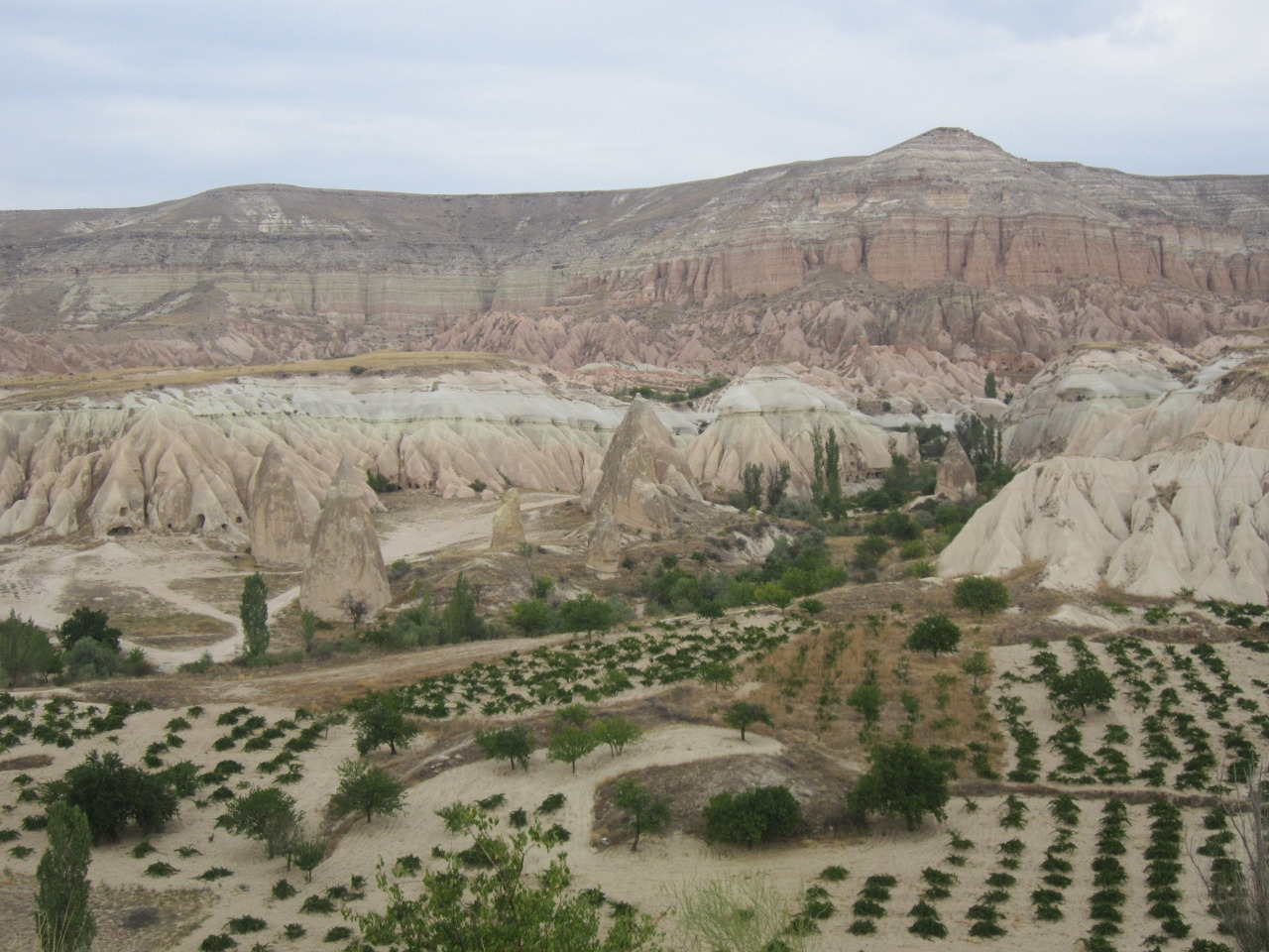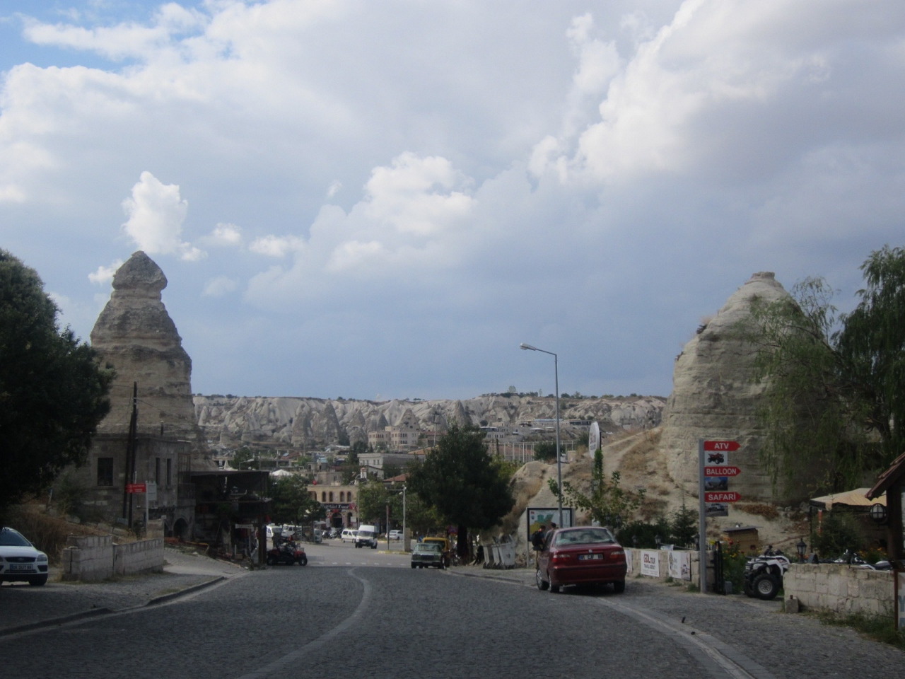 나이트 버스에서 설친 잠을 보충하고 밖으로 나왔다. 새벽빛에 뿌연 마을만 봐서 몰랐는데, 식당과 가게, 호텔이 몰려 있는 작은 중심가를 제외하곤 마을 전체가 기암괴석으로 둘러싸여 있다. 이 기암괴석이 원래 주인(이 맞지)인 듯 건물과 자동차가 너무나 부자연스럽게 느껴진다. 이곳의 독특한 자연환경이 충분히 설명해 주듯 작은 마을에는 한집 걸러 여행사가 있다. 게다가 심심찮게 보이는 한국어 광고. 셀축도 그랬지만 이곳도 한국 사람들이 정말 많이 오는 곳이었다. 문득 전에 선배로부터 들은 터키 여행 이야기가 떠올랐다. 그때 들었던 한국어를 정말 잘 구사하는 터키인 가이드는 바로 카파도키아 이야기였다. 한국인이 먼저 이곳을 찾은 건지 한국어를 배운 터키인이 한국시장을 개발한 것인지 무엇이 먼저인지는 잘 모르겠다. 하지만 한국어를 하는 터키인 가이드는 매우 바쁘다 했다. 그리고 역시나 한국 사람이 많으면 으레 생기는 그것, 도보로 5~10분이면 충분히 다 둘러볼 수 있는 마을에 이미 한국식당이 2군데가 있다. 정말 지구 어느 곳이든 한국 사람들이 정말 많구나. 우리 삶의 질이 정말 높아졌다는 생각이 다시 한번 든다.