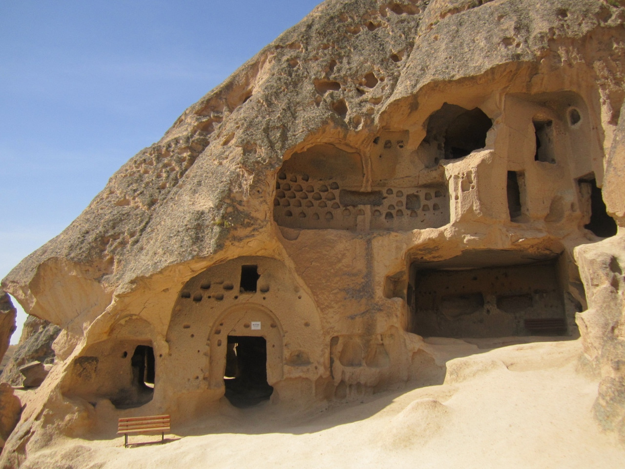 터키의 시골 내음을 맡으며 도착한 곳은 '셀리메 동굴 수도원 Selime Cathdrale'이다. 종교 박해란 이유로 이 동굴까지 온 사람들이니 이곳에 수도원을 만들지 않았을 리 없다. 겉으로만 보면 평범하기 짝이 없는 바위 같다. 울퉁불퉁한 외부는 쥐가 파먹은 스펀지 같아 보이지만, 바위 내부, 동굴에는 사람들이 살다 간 흔적이 역력하다. 어제 '괴레메 오픈 에어 뮤지엄'에서도 느낀 것이지만, 자신들을 눈이 빠지도록 찾아다니는 사람들 때문에 항상 전전긍긍하며 살던 사람들이 이렇게 멋있는 내부장식에 공들인 것을 보면 존경의 말이 그대로 터져 나온다.