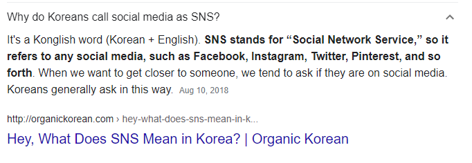 전혀 틀린 말이 아님에도 불구하고 의외로 외국인들은 SNS란 단어를 모릅니다. SNS는 Social Networking Servic라고 말을 해줘야 이해합니다. 실제로 구글에는 다음과 같은 질문이 종종 올라옵니다.