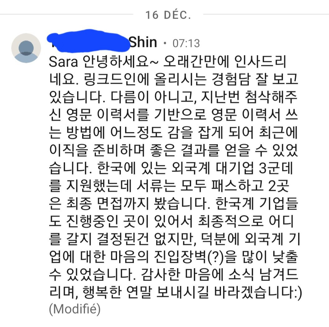 안녕하세요, 저는 비정기적으로 해외취업에 관심 있는 분들과 온라인 모임을 가집니다. 지난 8월에 하고 이번에 새해를 맞이하여 새로운 변화를 생각하고 계시는 분들과 함께 오랜만에 모임을 한 번 할까 합니다. ✔️일정: 2024년 1월 4일 목요일 저녁 9시(한국 시간) ✔️장소: 온라인 (Zoom 링크 보내드려요) ✔️인원: 선착순 최대 3분 – 저 혼자만 이야기 하는게 아니라 서로 편하고 유익하게 소통하는 시간이었으면 합니다. 늘 그렇듯이 한 분만 오셔도 진행합니다. ^^ ✔️비용: 비용은 없습니다. 다만 저와 모임에서 만난 리뷰, 후기 등을 본인이 이용하시는 SNS(블로그, 브런치, 링크드인, 인스타그램 등 편하신 곳)에 남겨주시면 됩니다. 저를 태그하거나 제 SNS 주소를 남겨주세요. ✔️방법: 아래 폼을 작성해 주시면 됩니다. https://lnkd.in/e8z2vpnT