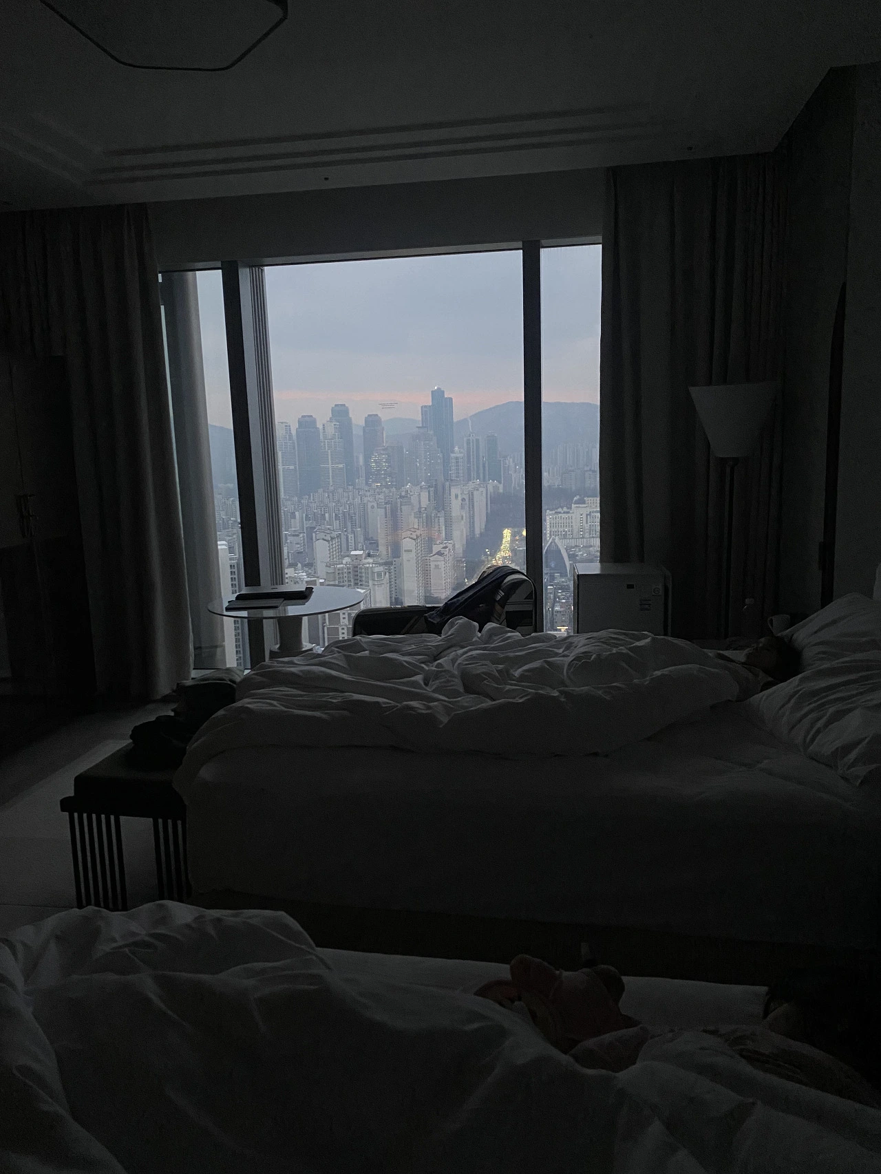 9살, 5살짜리 두 아이를 데리고 4인가족이 한 방에서 지낼 수 있는 호텔이 서울 시내에는 그리 많지 않다. 보통은 방 2개를 잡기를 권유하거나. 소파베드에 큰아이를, 우리 부부가 작은아이를 데리고 자는 시스템인데, 그런 의미에서 이번에 잡은 퀸 베드가 2개가 들어가고도 전혀 답답한 느낌이 들지 않았던 숙소는 여러모로 만족스러웠다.