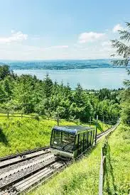 우리가 오늘 갈 곳은 옆 칸톤 Zug에 있는 Zugerberg으로 해발 1000m 정도로 이곳에서는 귀여운 언덕쯤 되겠다. 차를 세워놓고 Bergbahn이라 불리는 산악열차(아래 첫 번째 사진)를 타고 쭉 올라가서 그 위에서 산책하는 코스다.